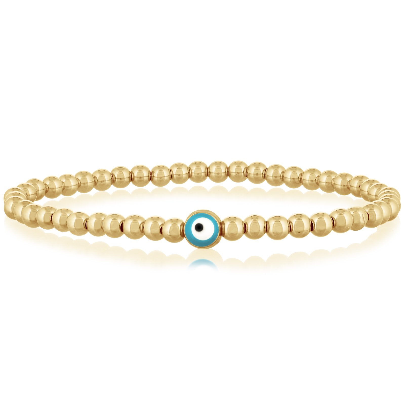 14K Gold Aquamarine Evil Eye Bead Bracelet