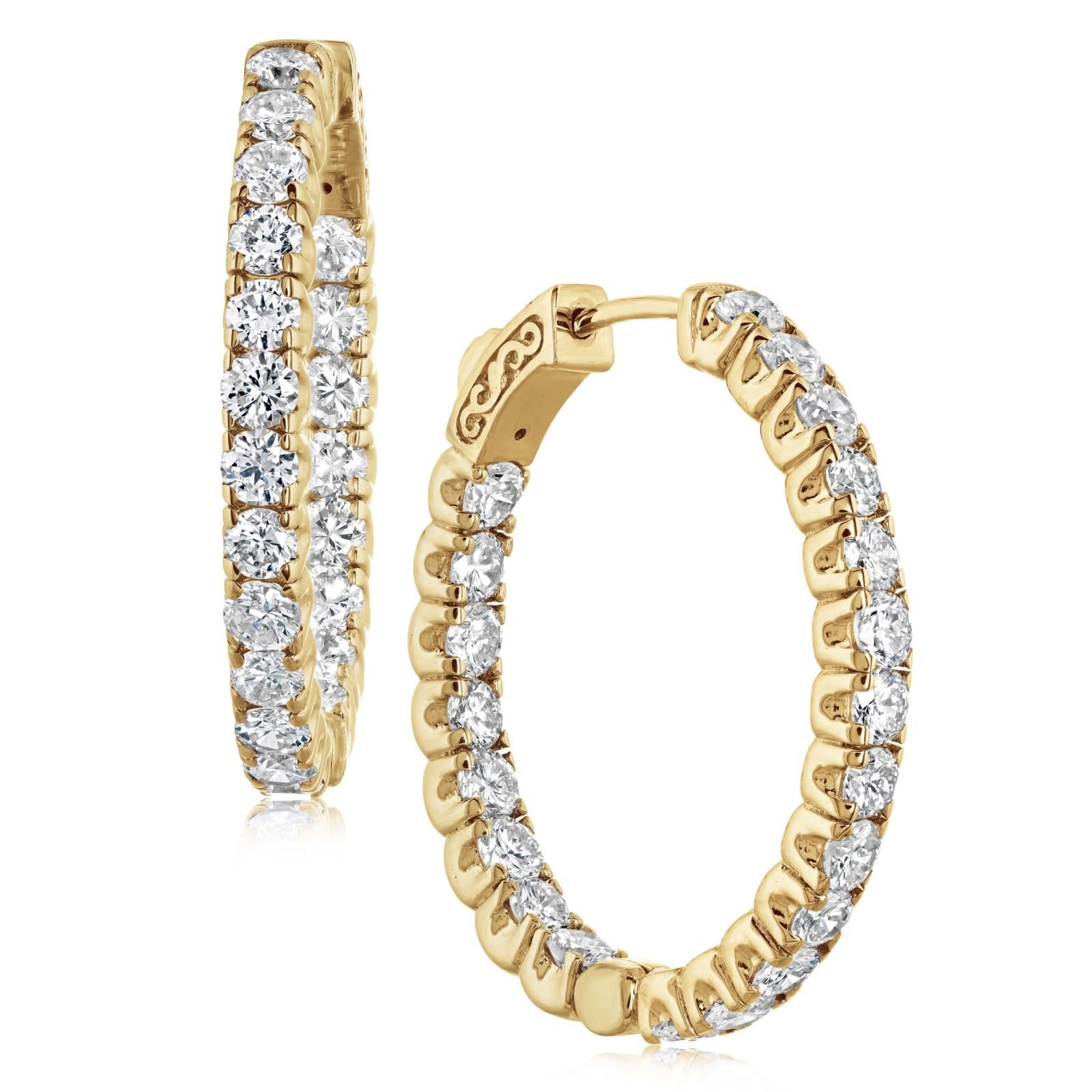 14K yellow gold diamond inside outside oval hoop earrings from the Reis-Nichols Collection. The hoops feature 42 round brilliant cut diamonds weighing approximately 3.5 ctw (3.35-3.85).