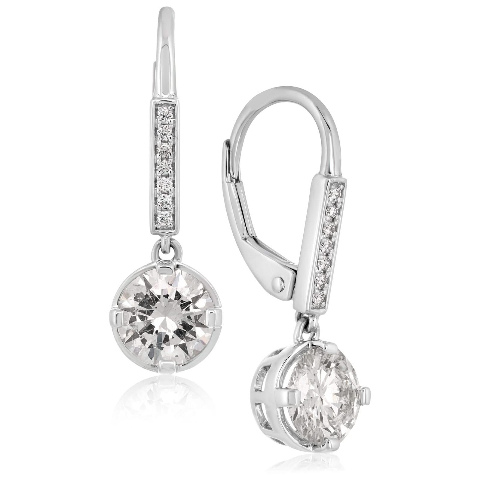 14K white gold diamond drop earrings from the Reis-Nichols Collection. The earrings feature 16 round brilliant cut diamonds weighing 1.47 ctw.