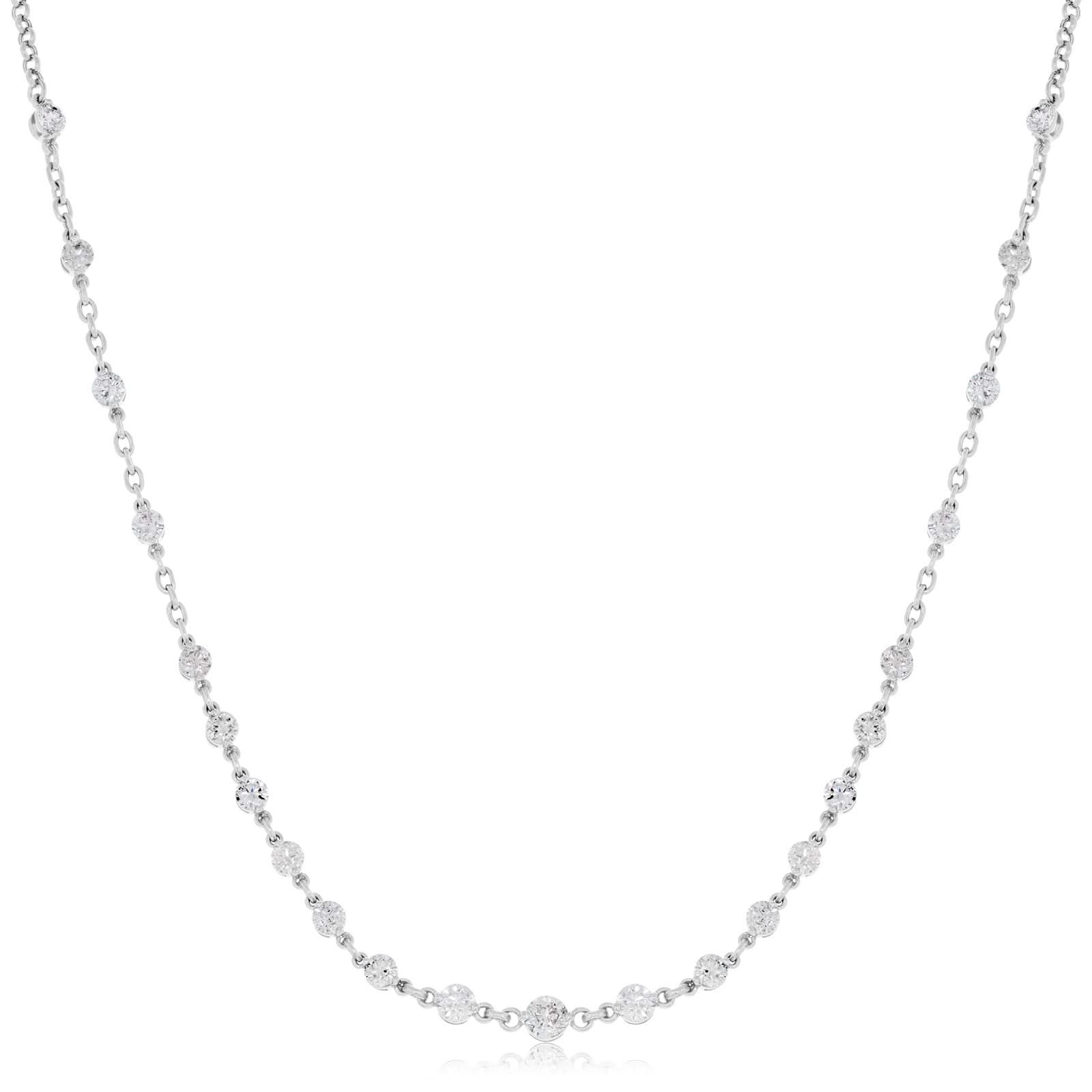 14K white gold 18" graduated chain necklace from the Reis-Nichols Collection. The necklace features 23 round brilliant cut diamonds weighing over 4 ctw.