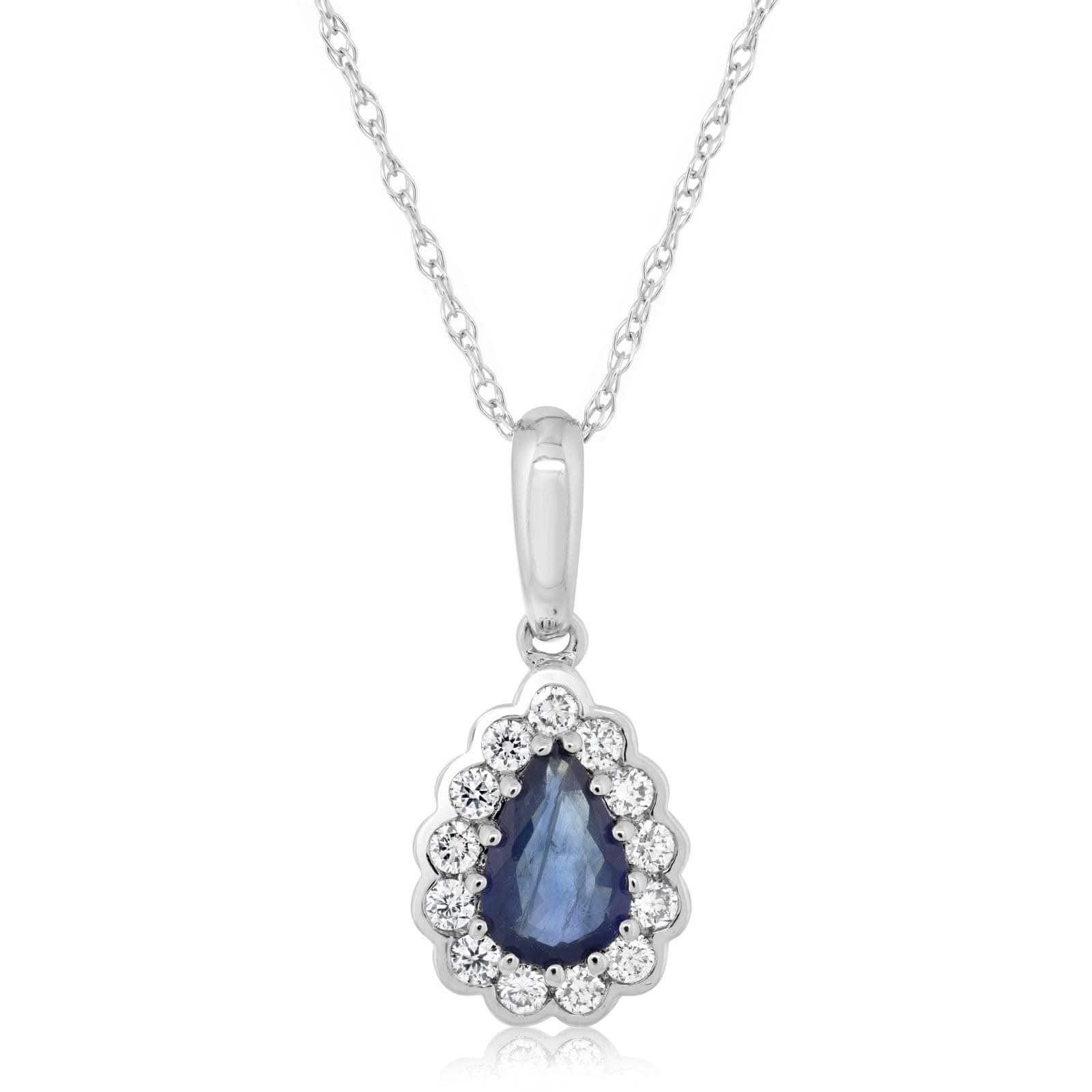 Pear Shaped Blue Sapphire & Diamond Halo Necklace