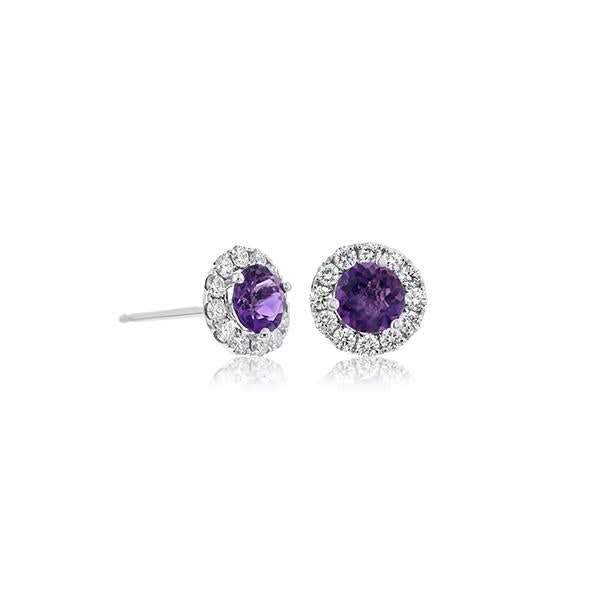 Amethyst & Diamond Stud Earrings
