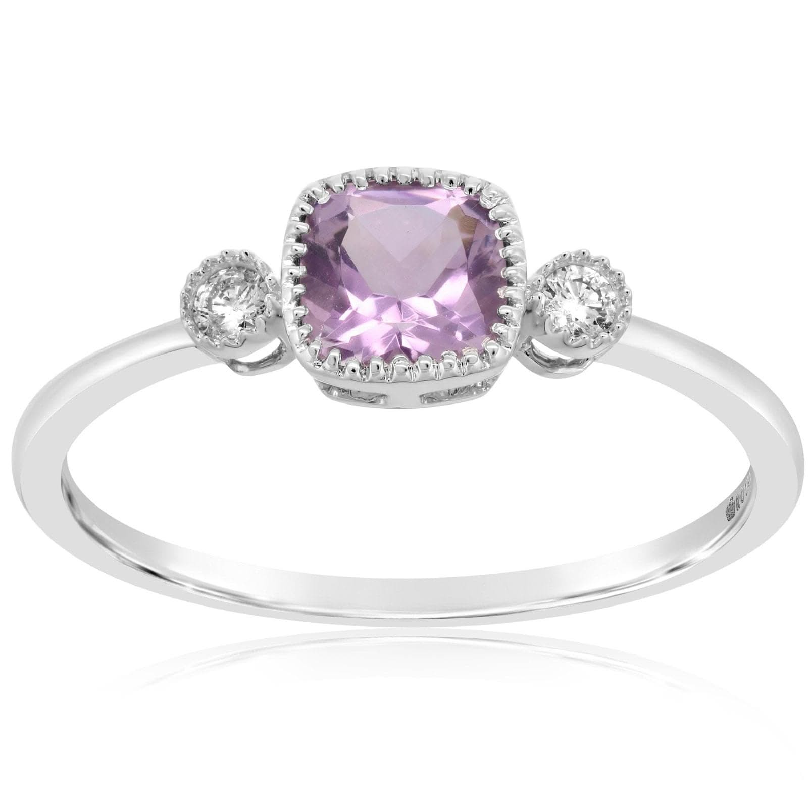Amethyst & Diamond Three Stone Ring