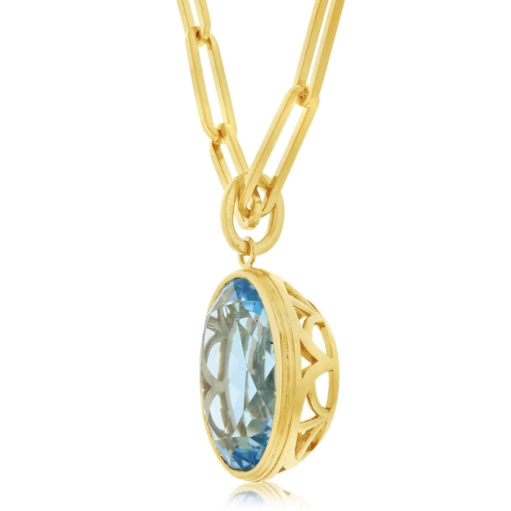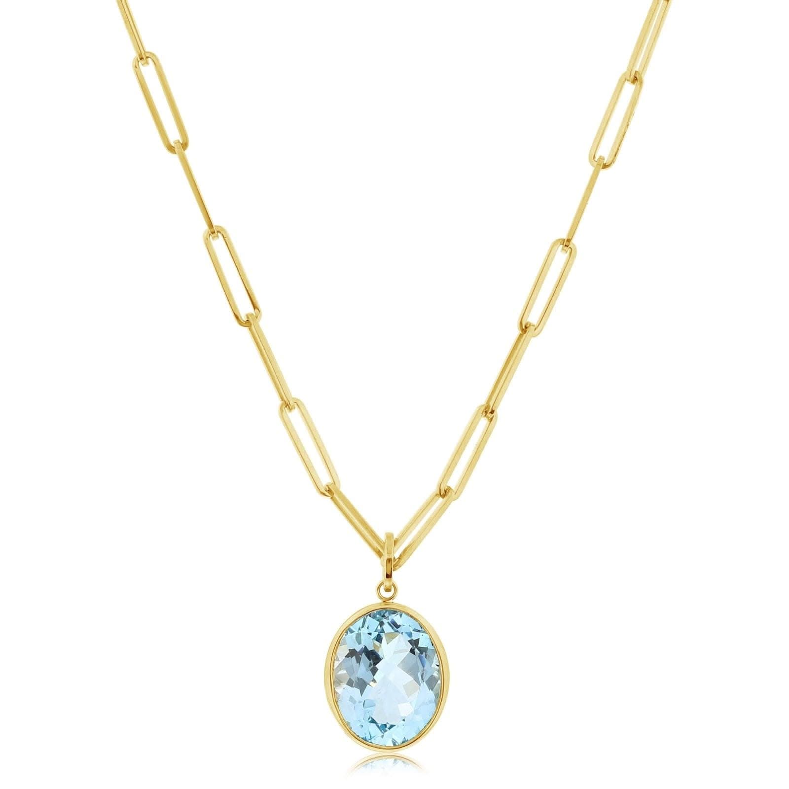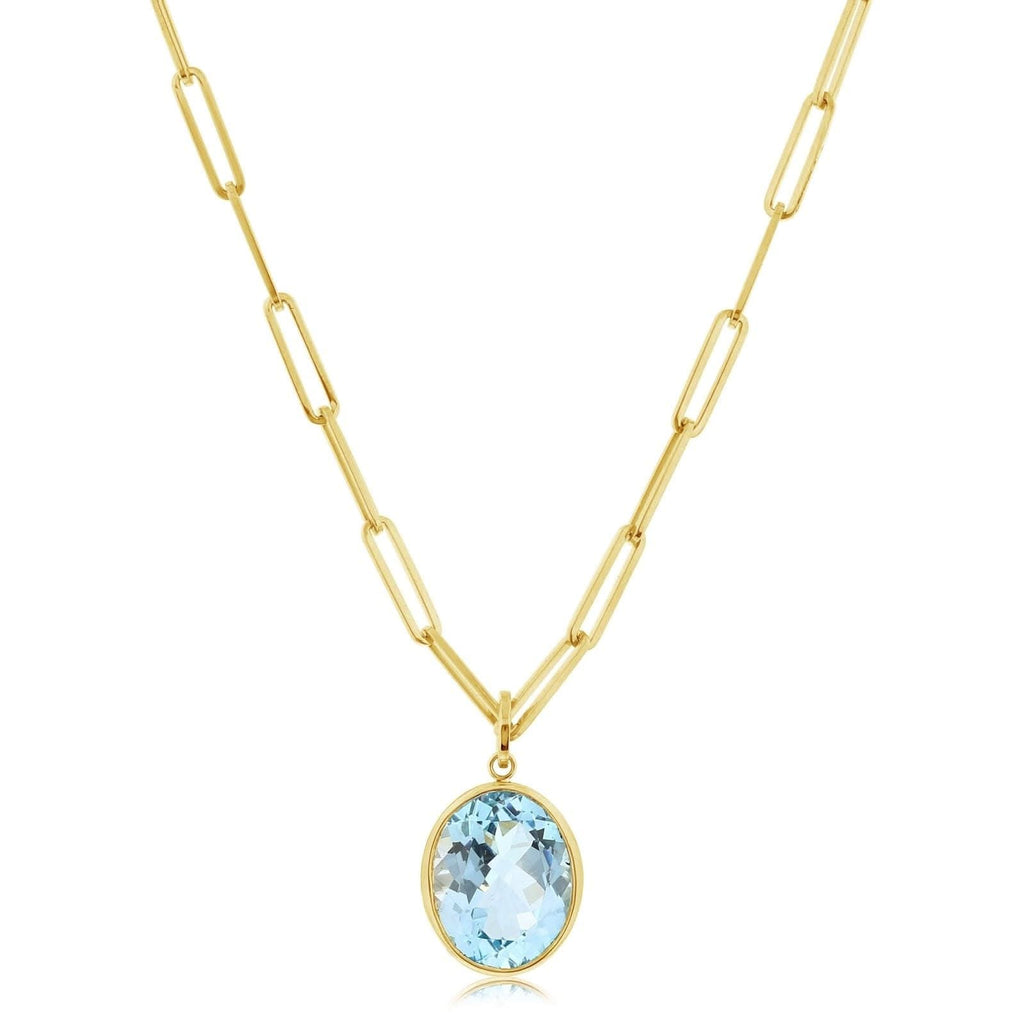 Oval Aquamarine Pendant & Paperclip Chain Necklace