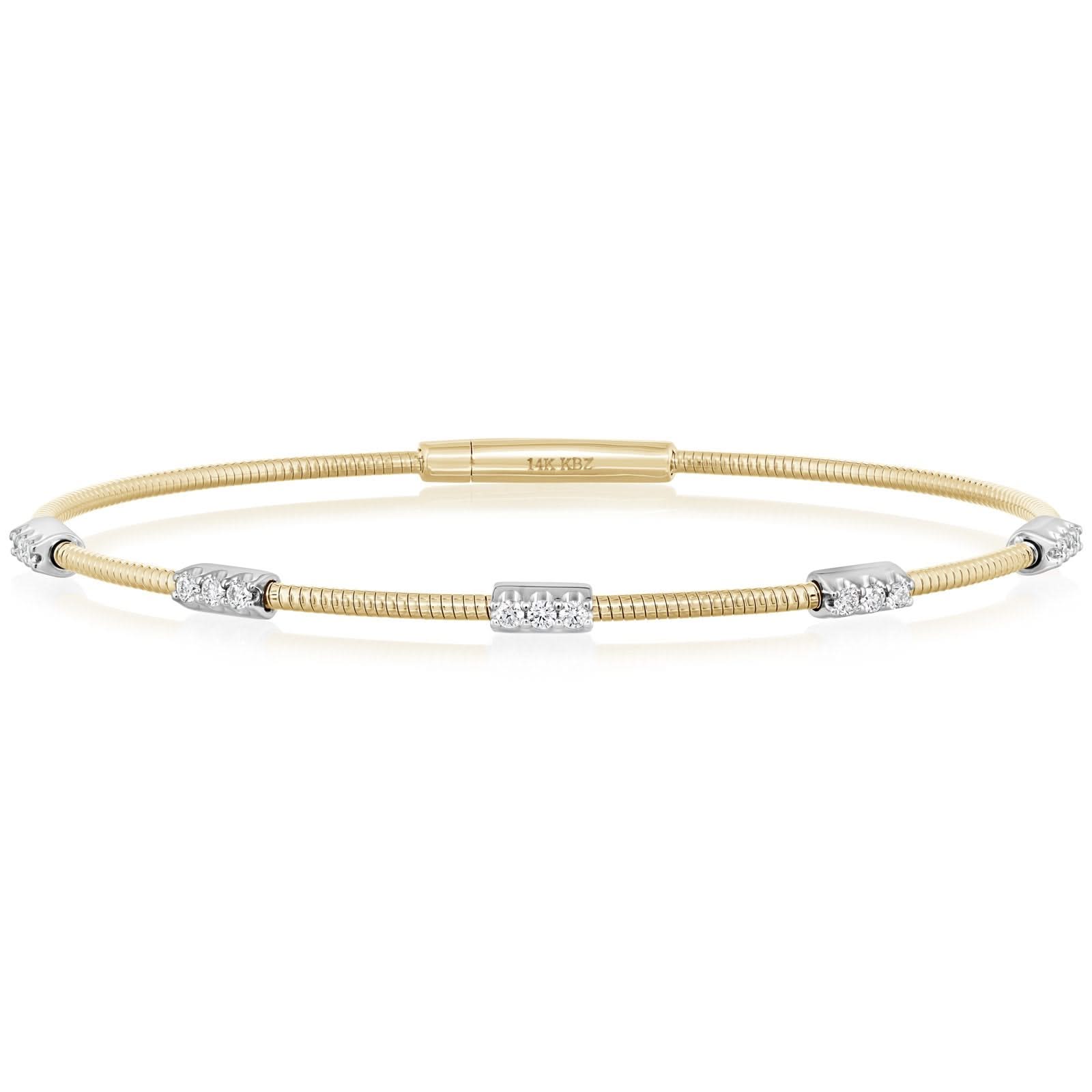 14K Gold .23 CTW Two Tone Diamond Station Bangle