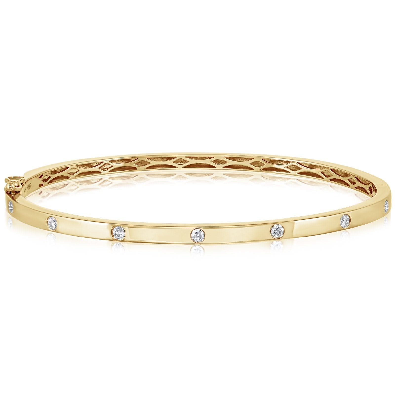 14K Gold .24 CTW Flush Set Round Diamond Bangle Bracelet