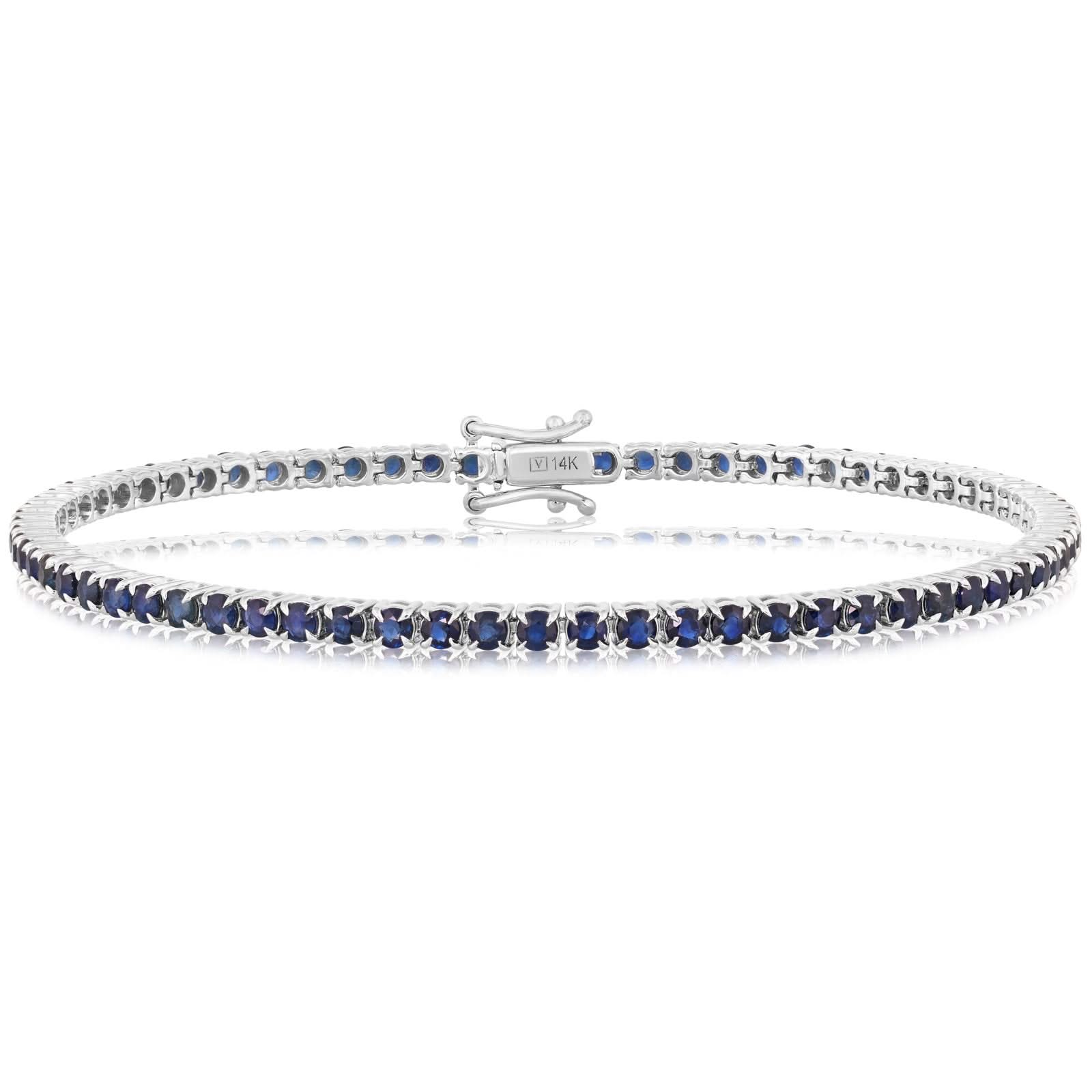 14K Gold 5.04 CTW Round Sapphire Tennis Bracelet