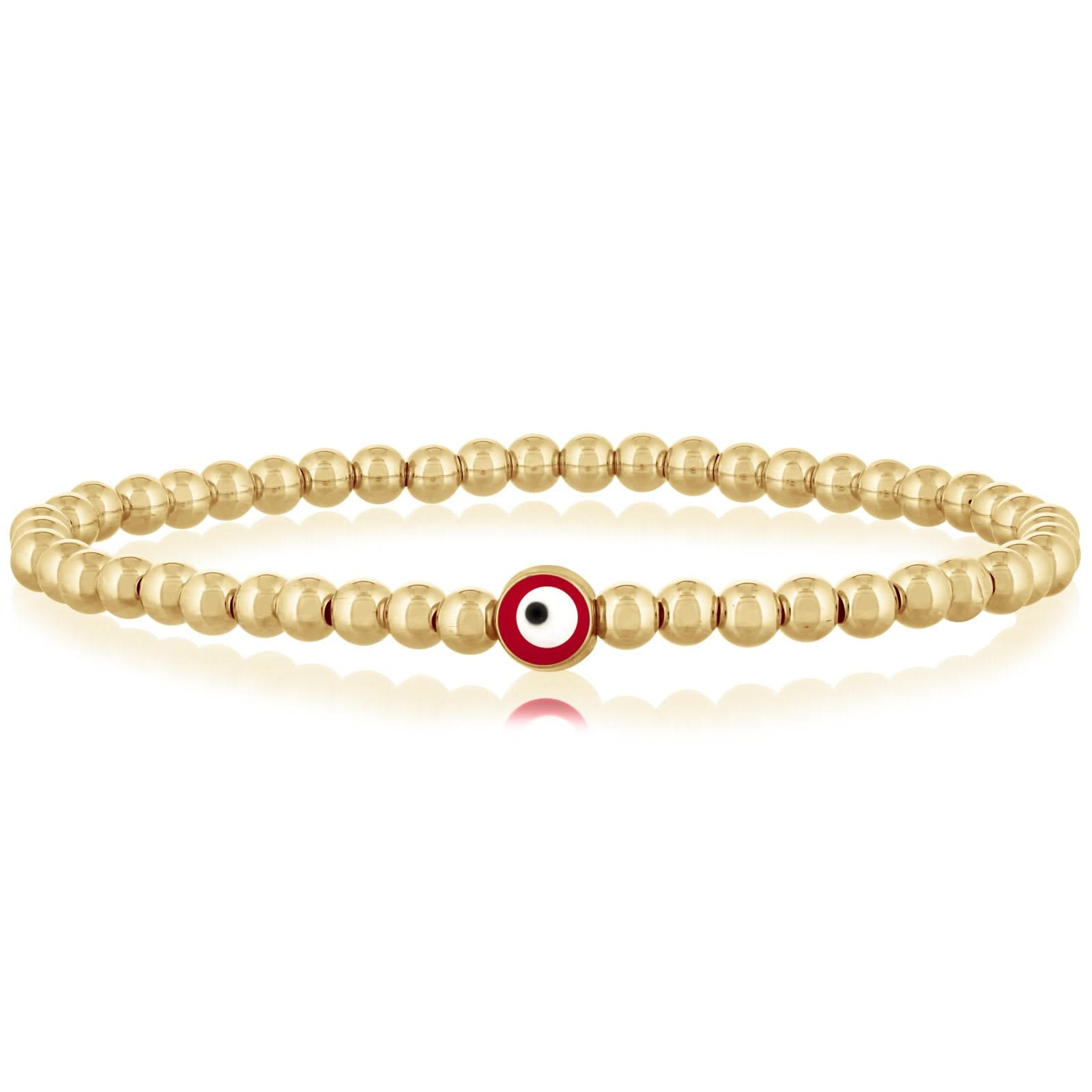 14K yellow gold filled 4mm orange evil eye beaded bracelet from the Reis-Nichols Collection. Special orders may be available. Please inquire for more details on availability. Pricing may vary depending on size and materials.