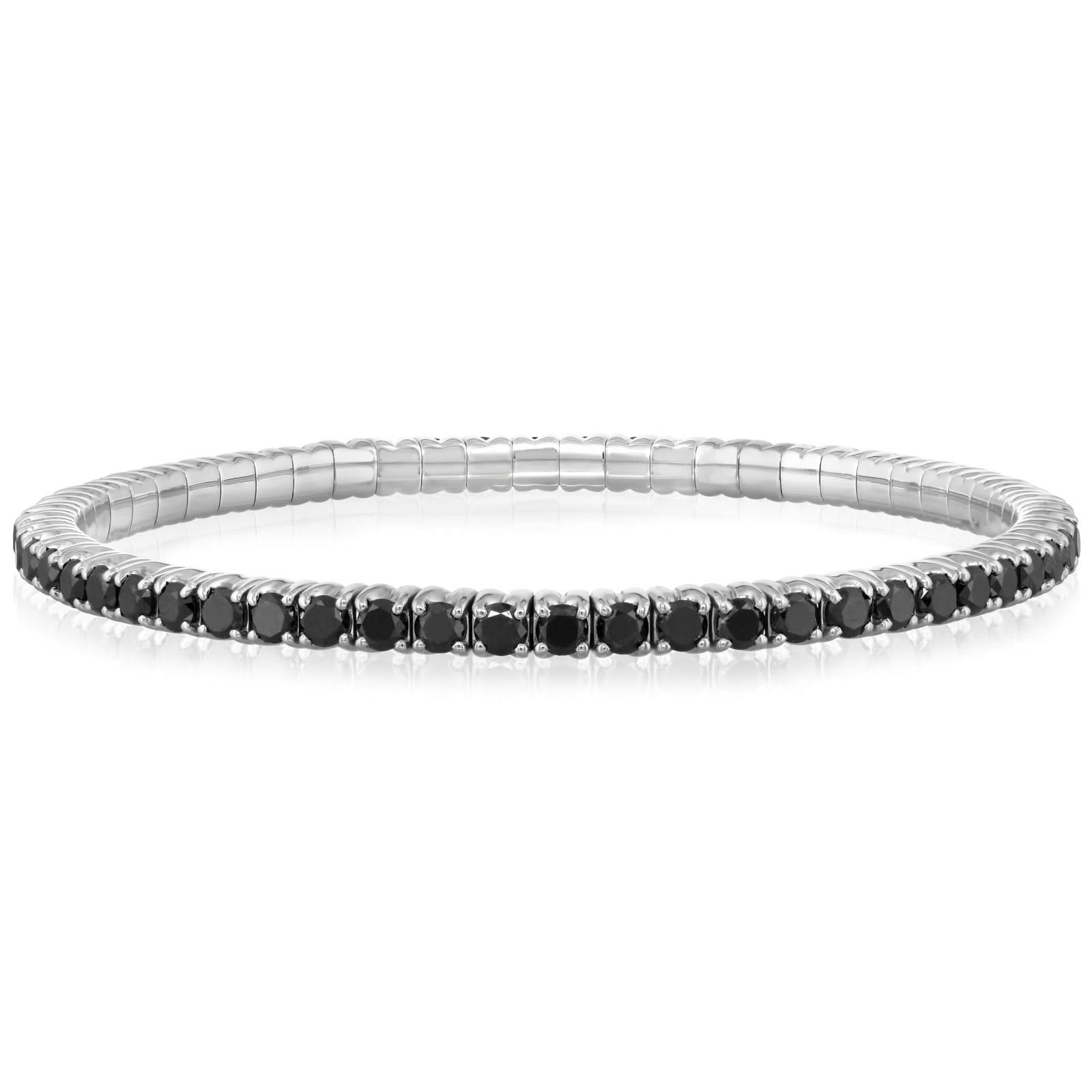18K white gold black diamond stretch bracelet from the Reis-Nichols Collection. The bracelet features 49 black round brilliant cut diamonds weighing over 6 1/2 ctw. Special orders may be available. Please inquire for more details on availability. Pricing may vary depending on size and materials.