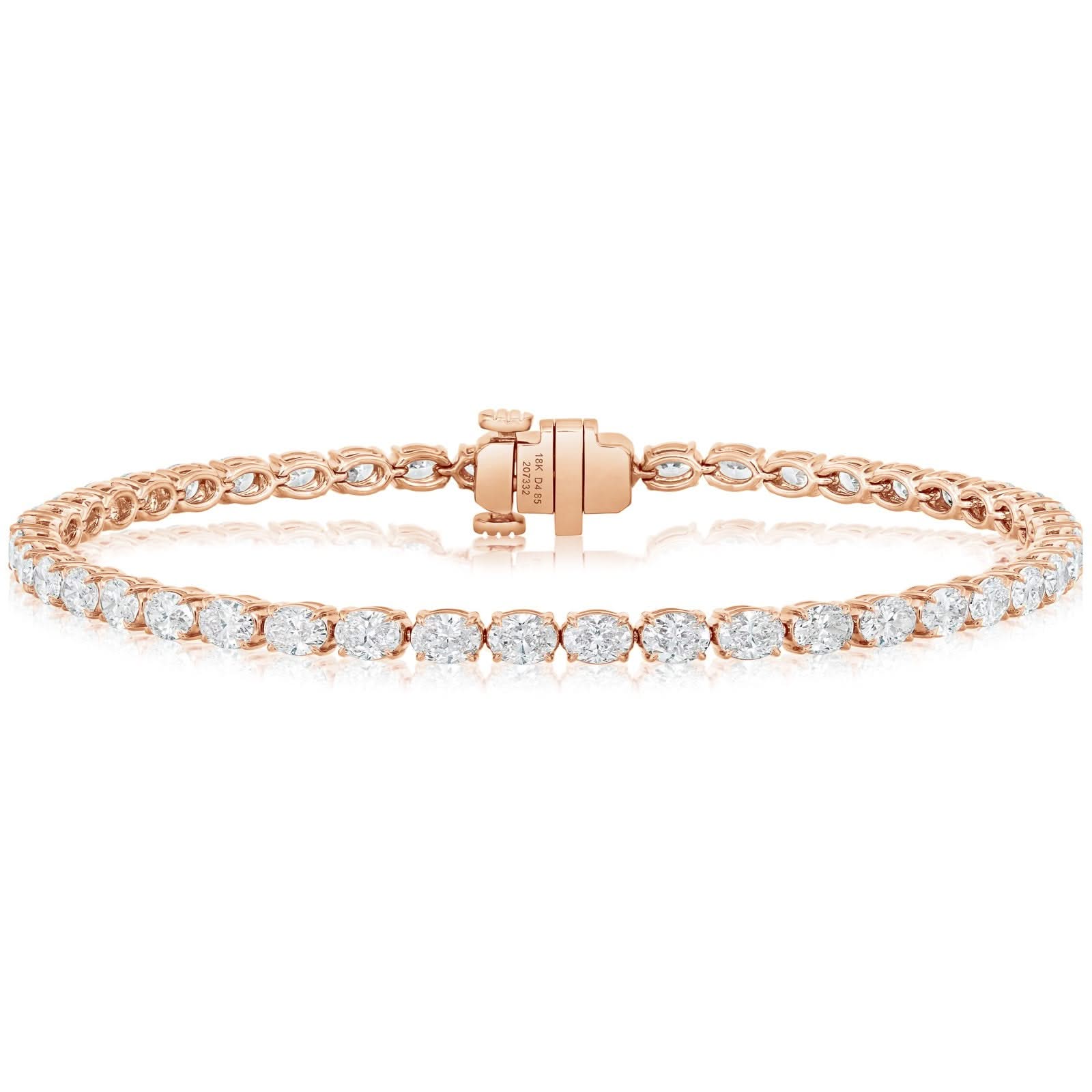 18K white gold east/west oval diamond line bracelet from the Reis-Nichols Collection. The bracelet features 45 oval diamonds weighing 4.85 ctw. The bracelet measures 7" in length.