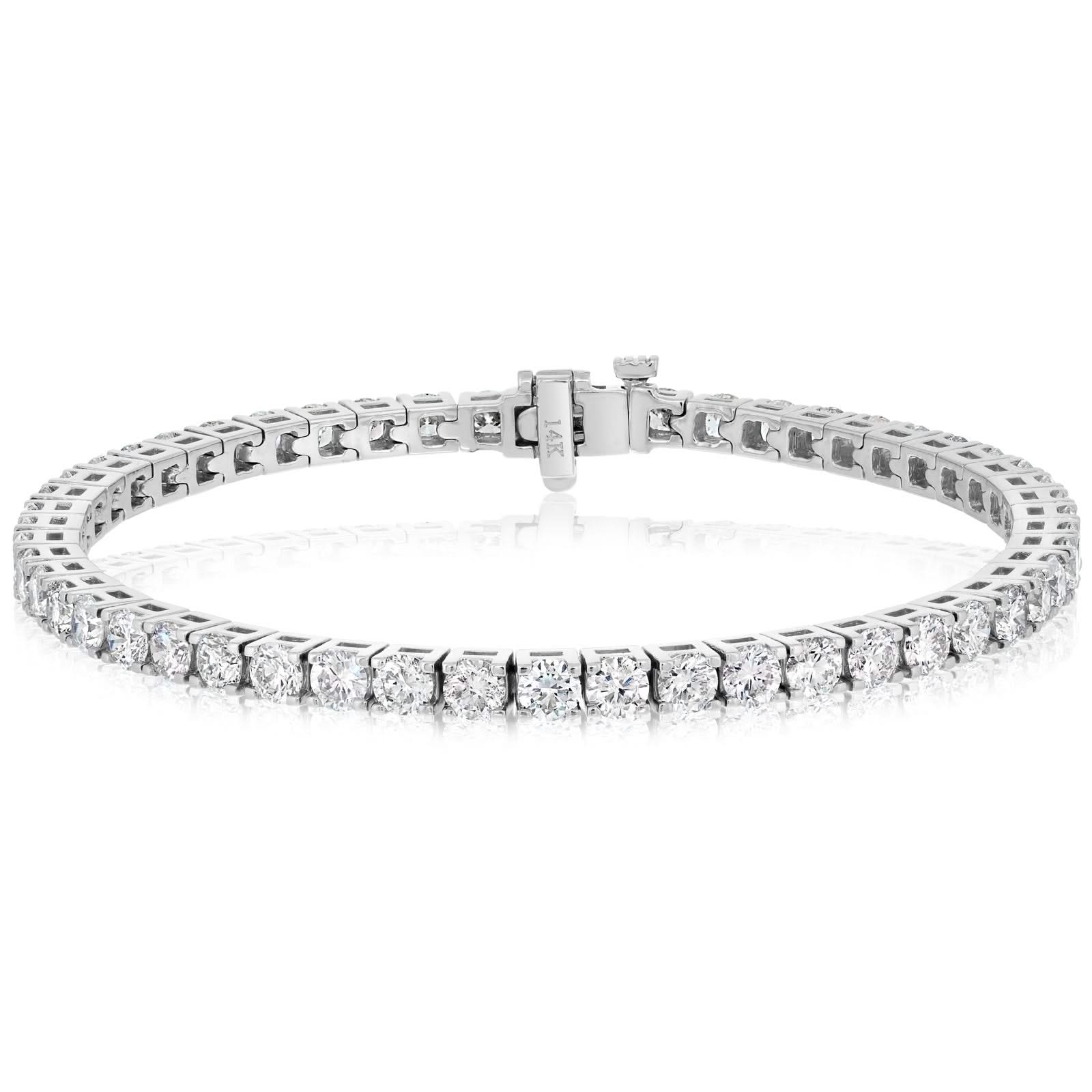 14K white gold diamond bracelet from the Reis-Nichols collection. The bracelet features 52 round brilliant cut diamonds weighing approximately 7.00 ctw (6.90-7.40). The bracelet is 7" in length.