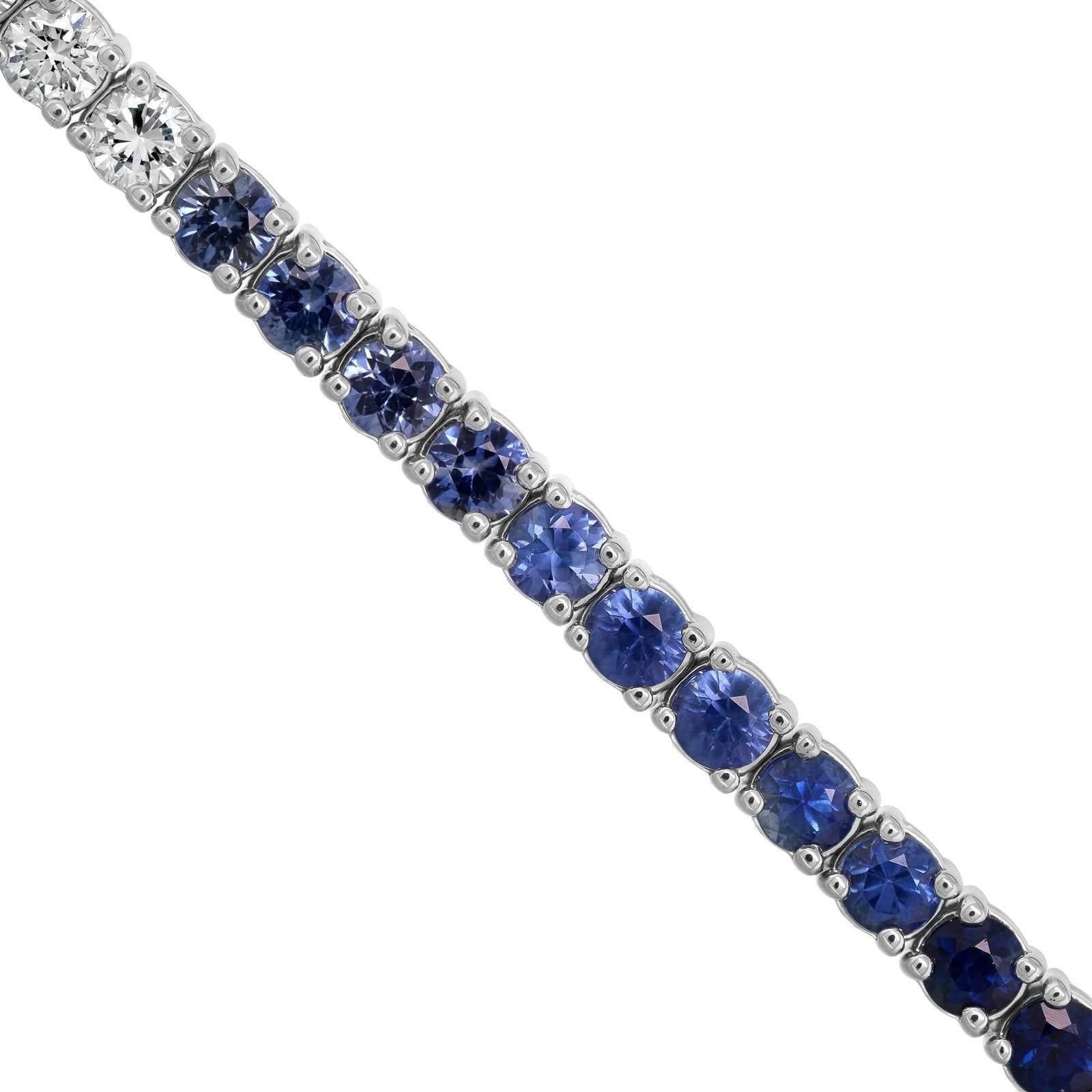 14K white gold 7" blue sapphire and diamond ombre tennis bracelet from the Reis-Nichols Collection. The bracelet features round blue sapphires and round brilliant cut diamonds weighing 4.04 ctw.