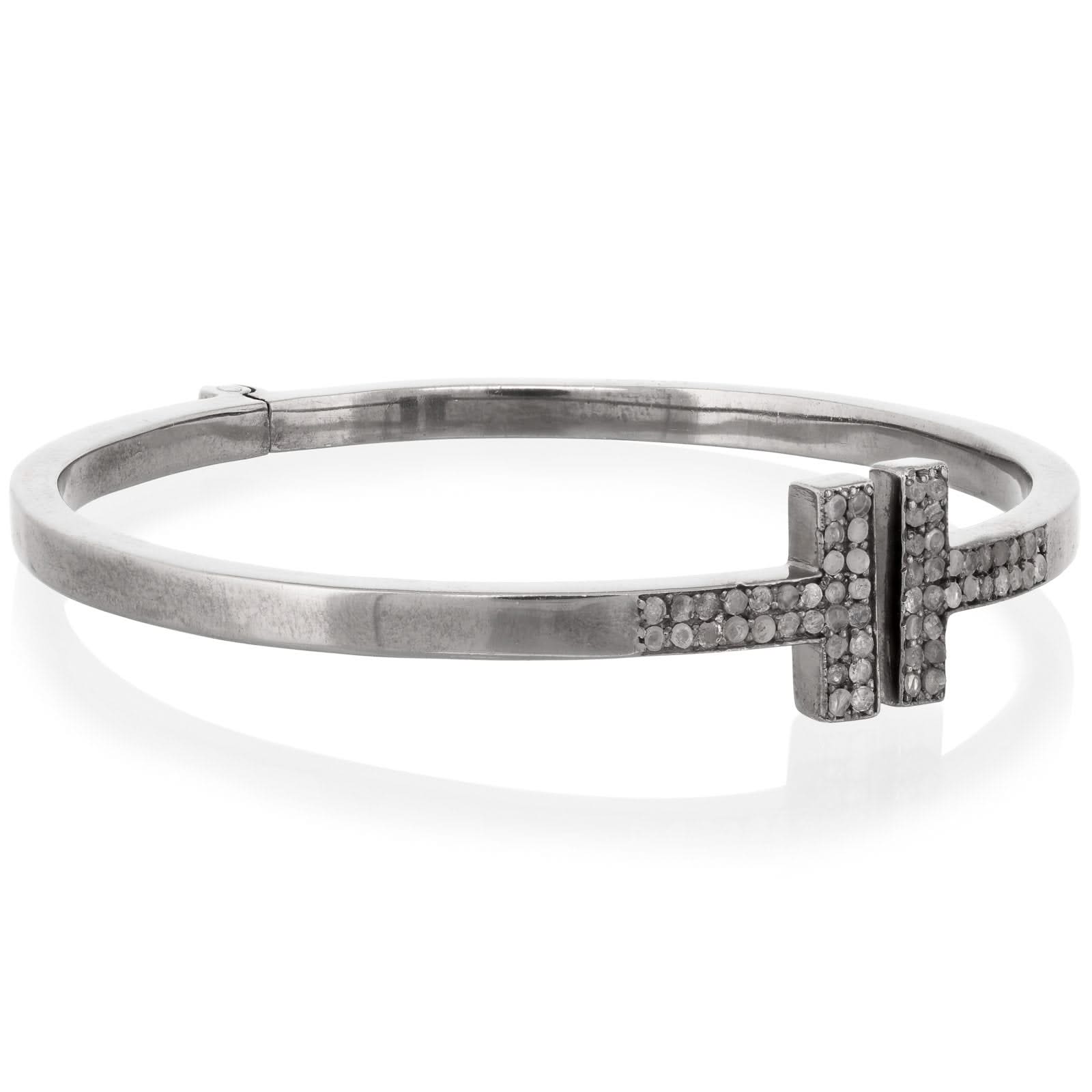 Sterling silver bangle with pave diamonds. Designed by Jill Duzan.