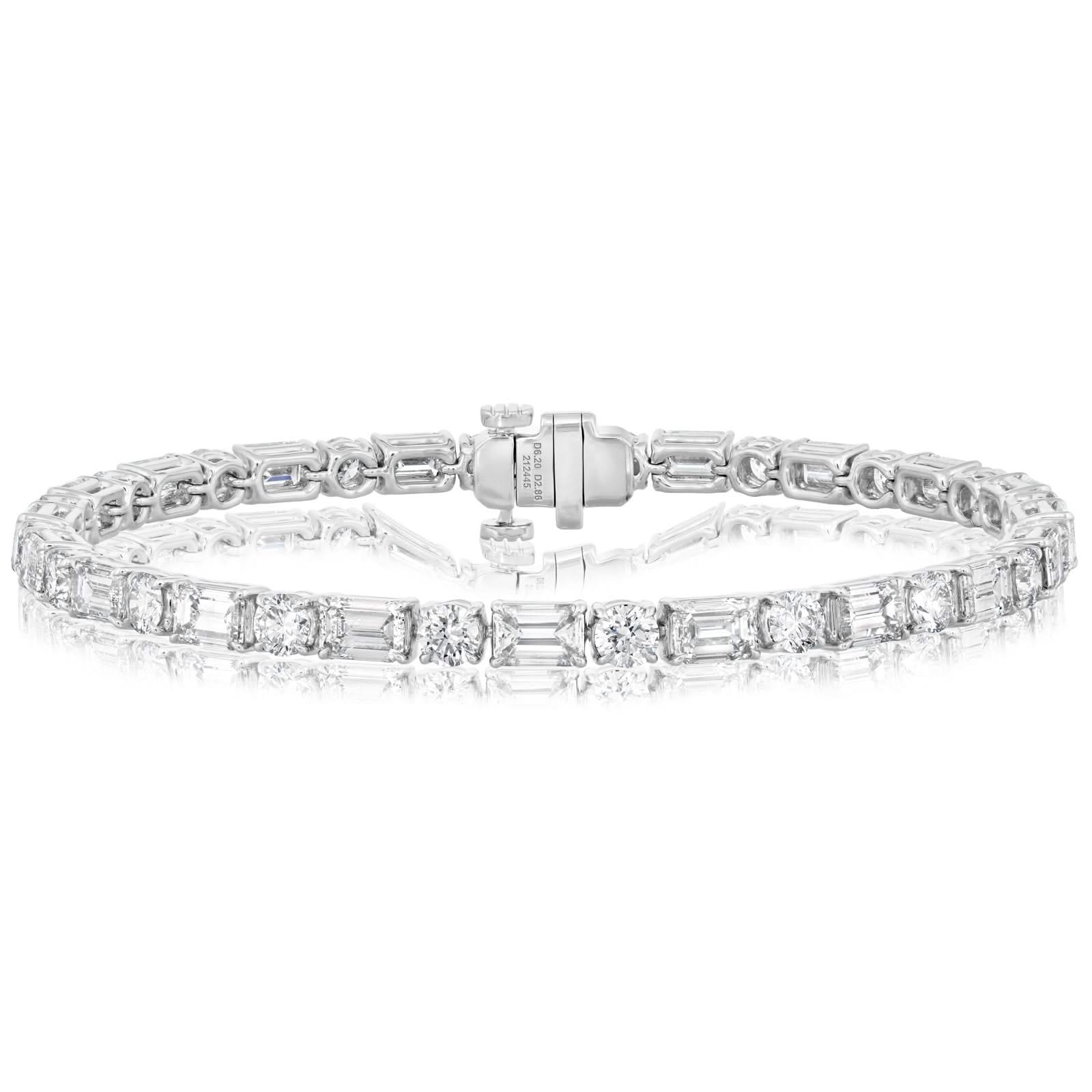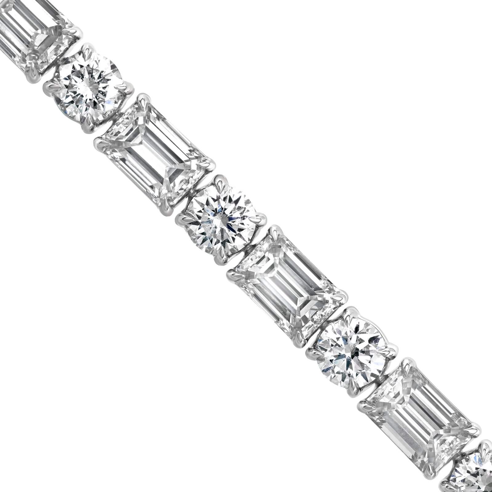 Platinum 9.06 CTW Emerald and Round Alternating Diamond Bracelet