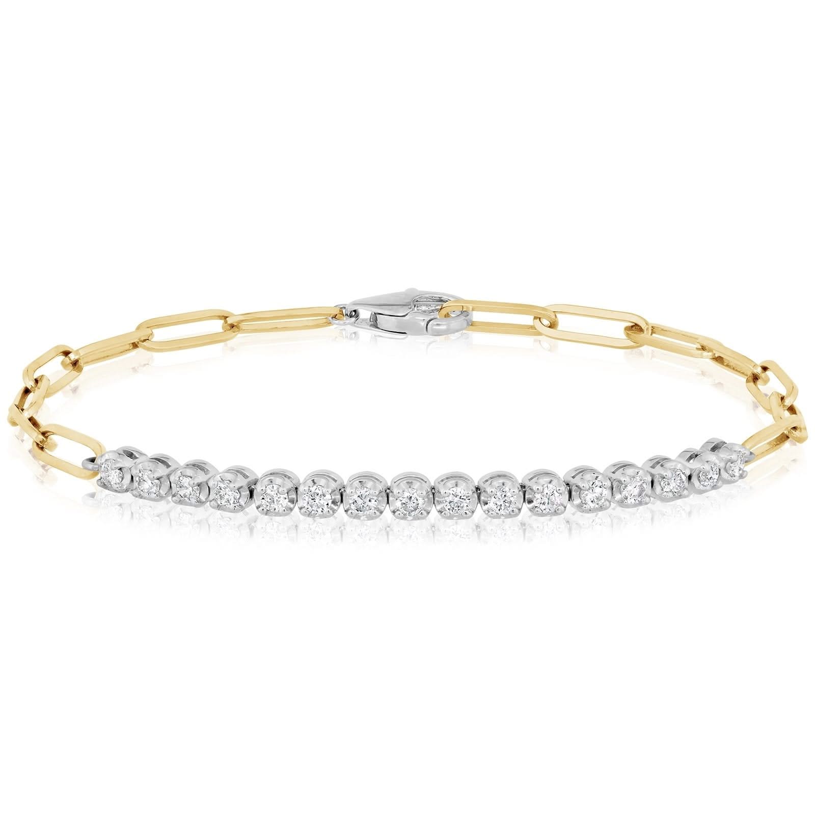 Two Tone 1/2 Carat Diamond Center Paperclip Bracelet