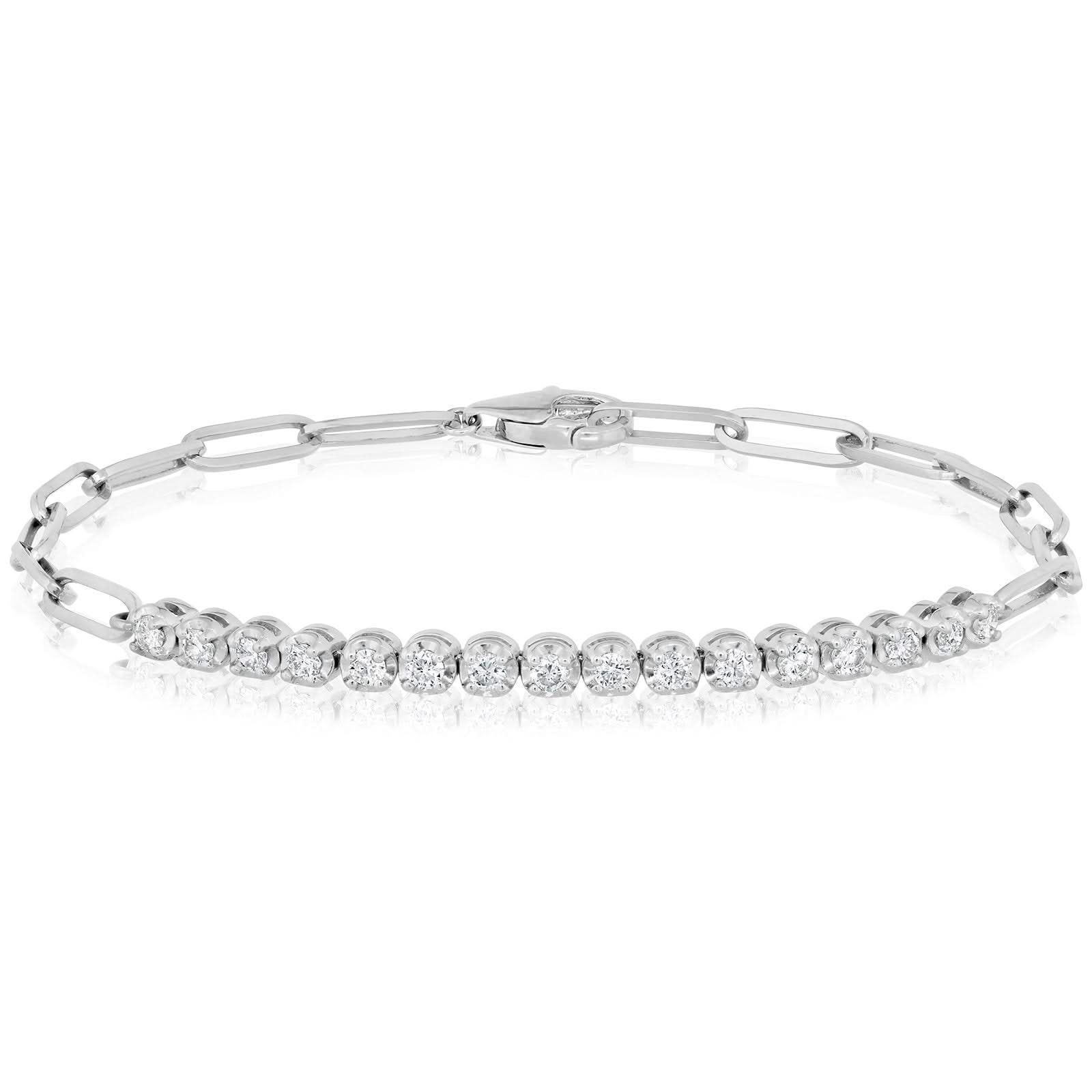 White Gold 1/2 Carat Diamond Center Paperclip Bracelet