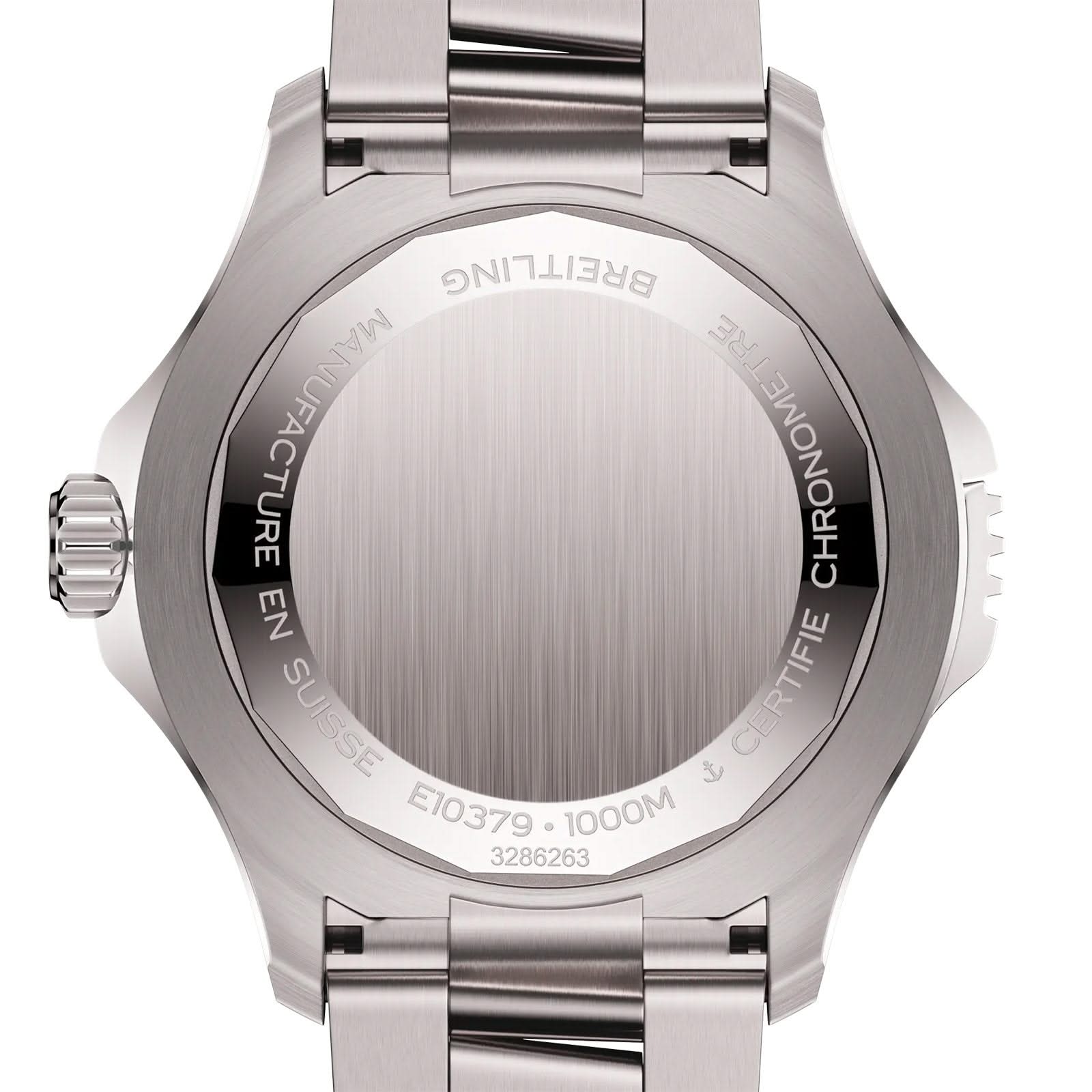 Ref#: E10379351B1E1, 46mm diameter, Titanium. Super performance for all your water-based pursuits. In the 1960s, the new sport of scuba diving was all the rage. For divers, timing was everything, and Breitling set out to give them the most clear-cut dive watch possible by eliminating any feature that didn’t support their lifesaving needs underwater. This pared-down watch was named the Superocean Slow Motion. What remained were clean lines, chunky luminescent indexes, squared-off hands and a high-contrast dial ring, all aimed at maximum legibility. Practical, yes. But what people really fell in love with was the look. The Superocean Automatic 46 Super Diver retraces the Slow Motion's celebrated design codes, while adding modern features, like a scratch-proof matt ceramic-inlayed bezel and camouflage dials. Broad hands and indexes in luminescent Super-LumiNova® allow for easy readability underwater. The watch is water resistant to 1,000 m (3,300 ft), as well as being shock-, sand- and saltwater-resistant. And there’s much more to this watch than meets the eye: Its soft-iron inner case offers protection against the effects of magnetic fields, while its bi-directional rotating bezel can be safely secured with a lock on the left side of the case. The two strap options (rubber or titanium bracelet) have a folding clasp that allows for micro-adjustments of up to 15 mm for easy wear over rashies and wetsuits. Best of all, this is no longer strictly a dive watch—surf with it, swim with it, hit the beach bar with it, then wear it out to dinner. The Superocean perfectly balances the nostalgia of its heritage with a fresh new look. If you would like to make your Breitling more personal, Reis-Nichols Jewelers offers engraving as well as bracelet and strap adjustments on your Breitling purchase.