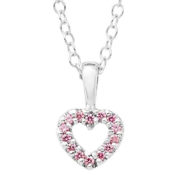 Sterling silver pink cubic zirconia heart pendant from the Reis-Nichols Collection. The pendant is featured on a 15" chain. Visit either our Indianapolis/Fashion Mall Commons or Greenwood store to view our entire collection of children's necklaces.