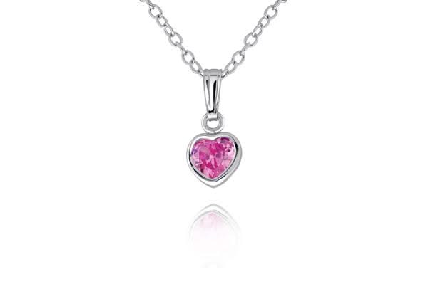 Sterling silver children's pink cubic zirconia heart pendant from the Reis-Nichols collection. The pendant is featured on a 13" silver chain. Visit either our Indianapolis/Fashion Mall Commons or Greenwood store to view our entire collection of children's jewelry.