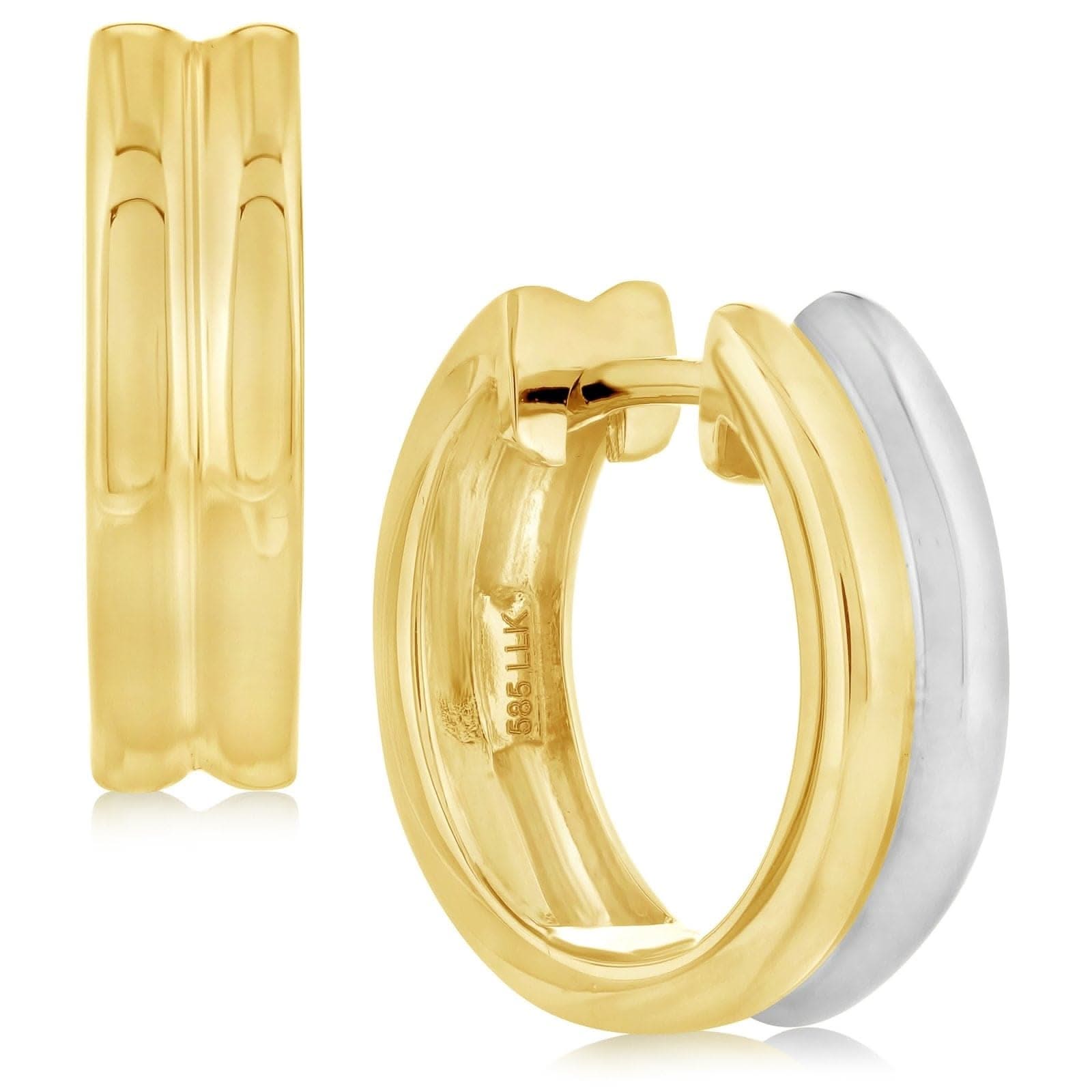 One pair of 14K white and yellow gold hinged hoop earrings from the Reis-Nichols Collection.