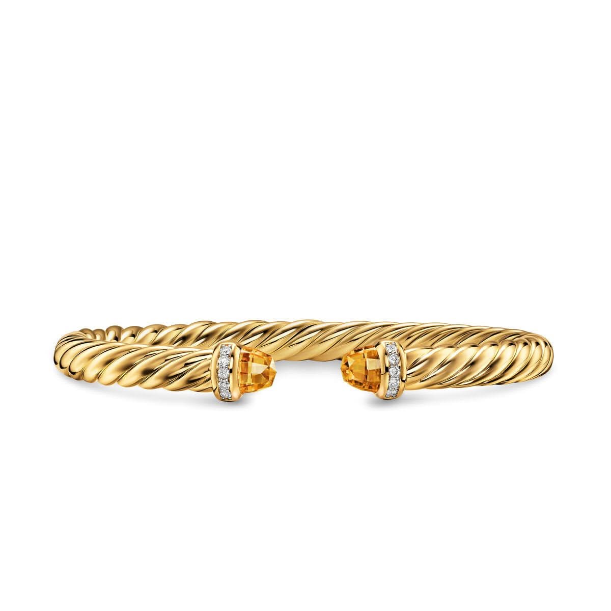 18-karat yellow gold, Citrine, Pavé set diamonds, 0.13 total carat weight, Bracelet, 6mm, Cablespira® is a patented DY construction that is highly flexible and exceptionally comfortable to wear. Designed by David Yurman.