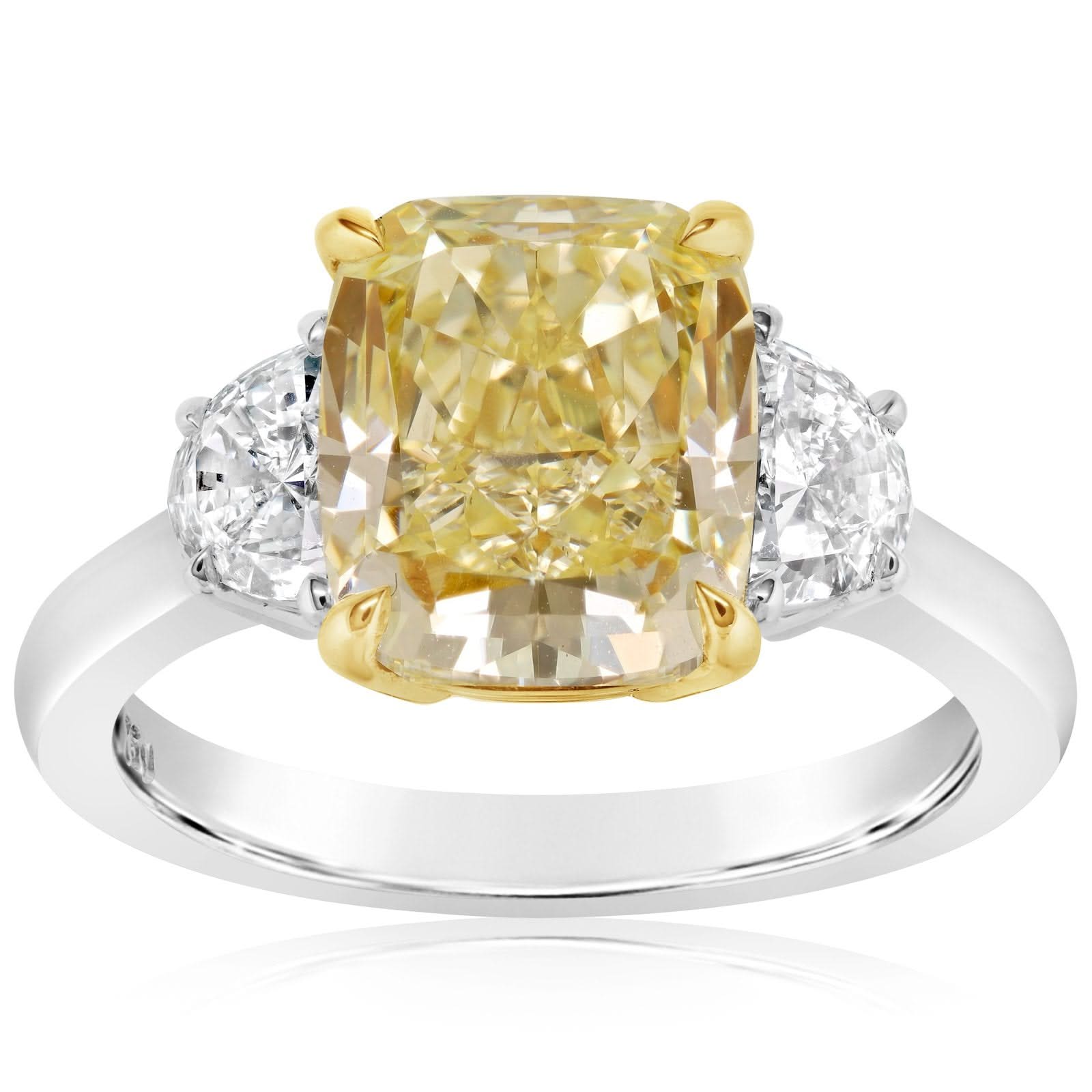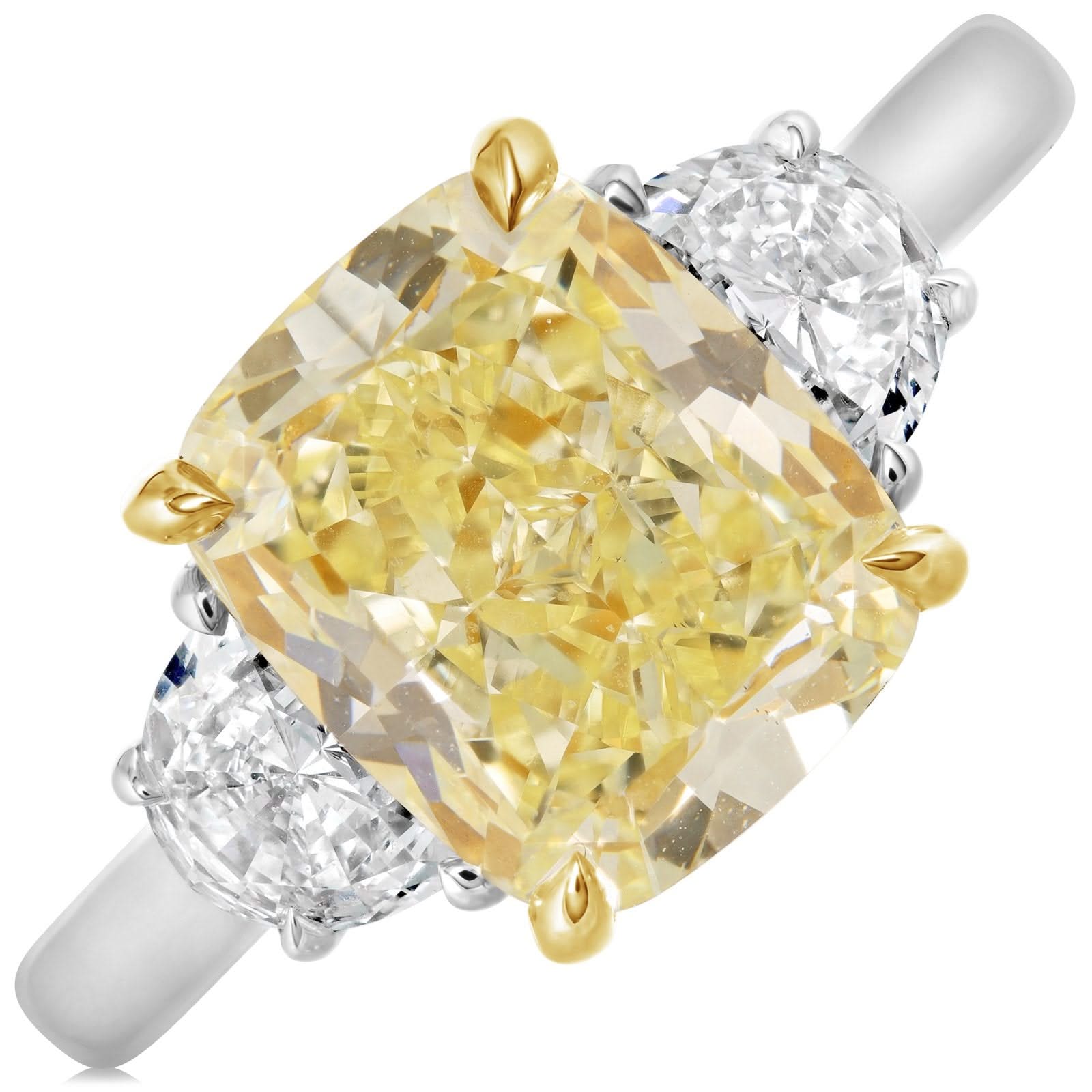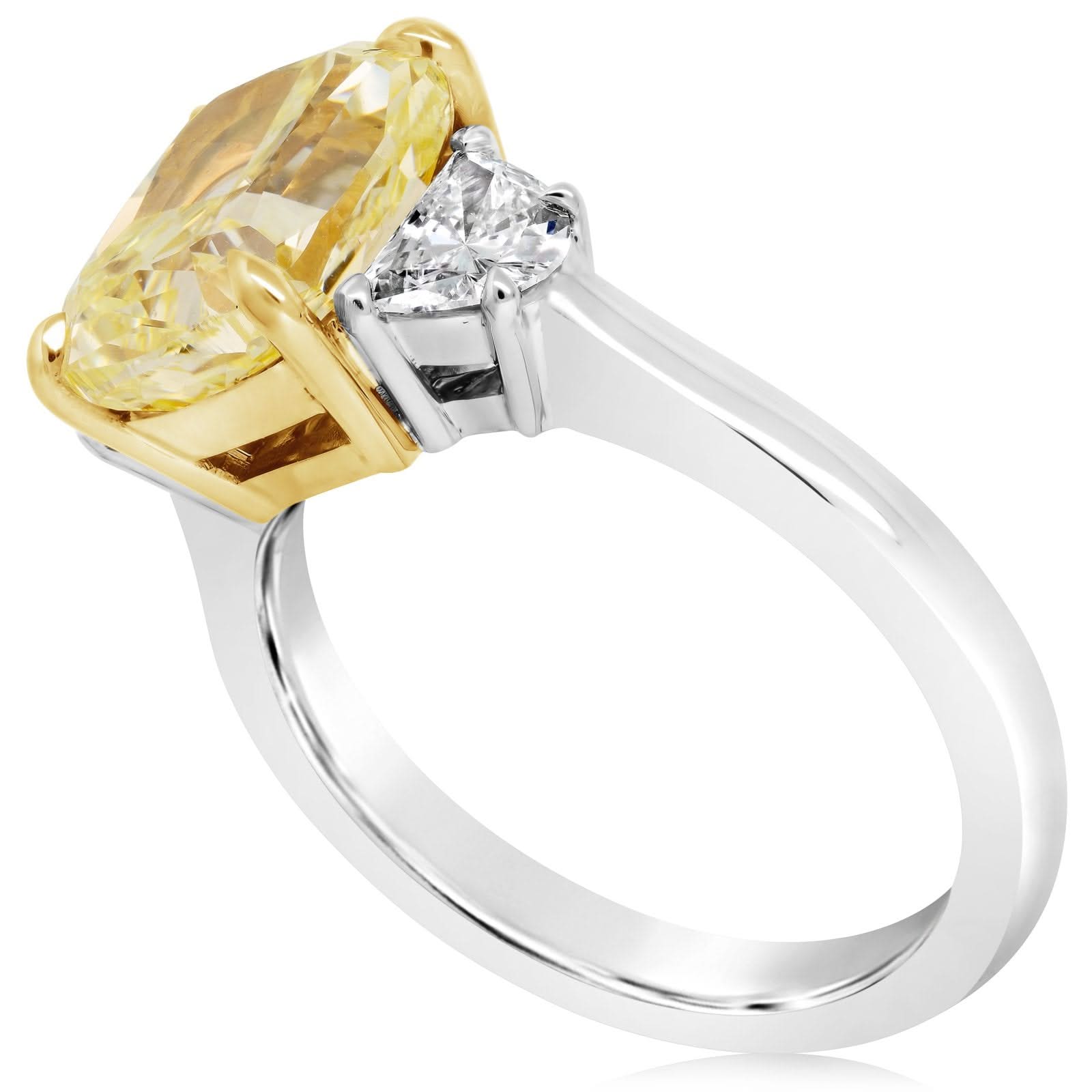 4.12 Carat Fancy Yellow Cushion Cut Diamond Three-Stone Engagement Ring