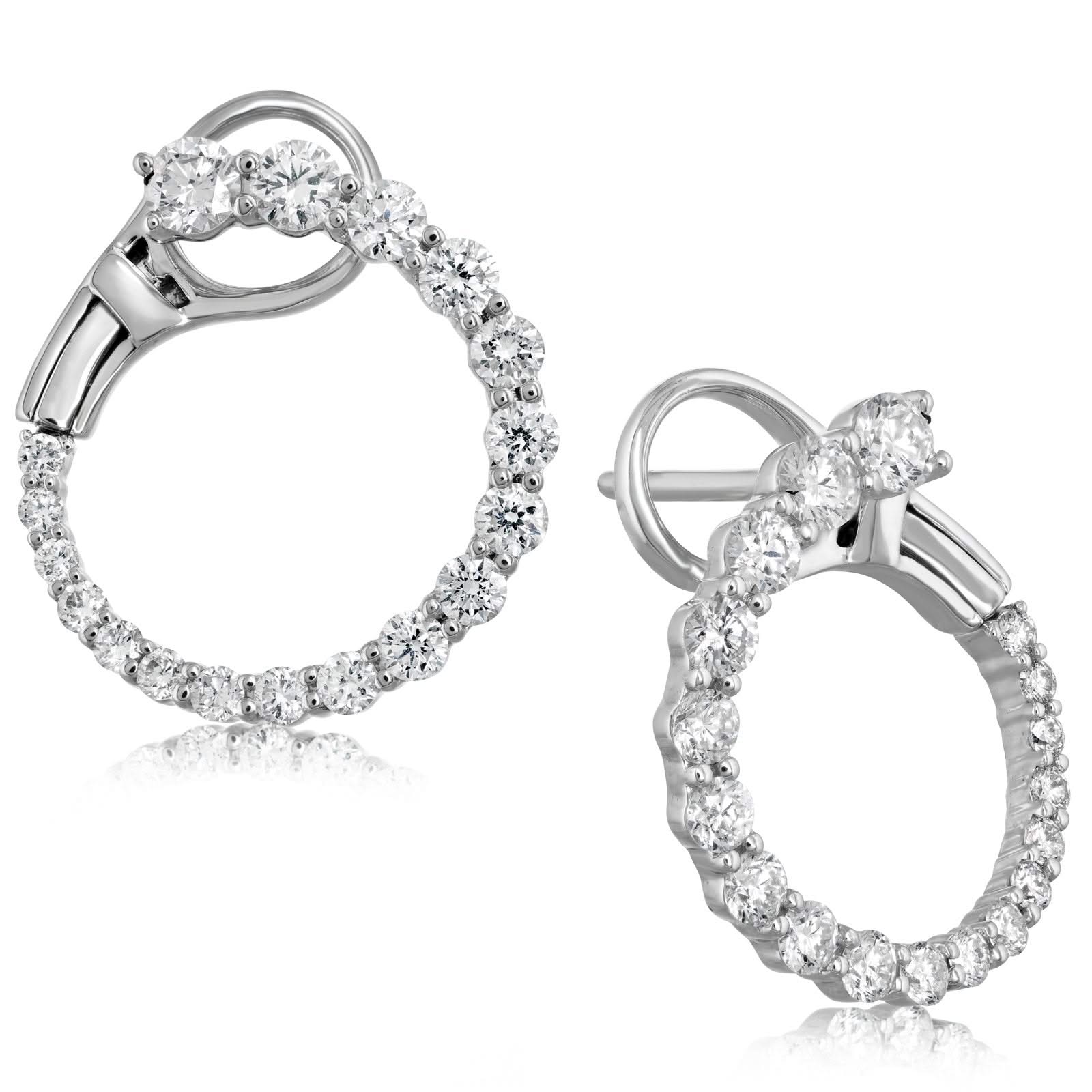 14K white gold diamond earrings from the Reis-Nichols Collection. The earrings feature 36 round brilliant cut diamonds weighing 1.09 ctw.