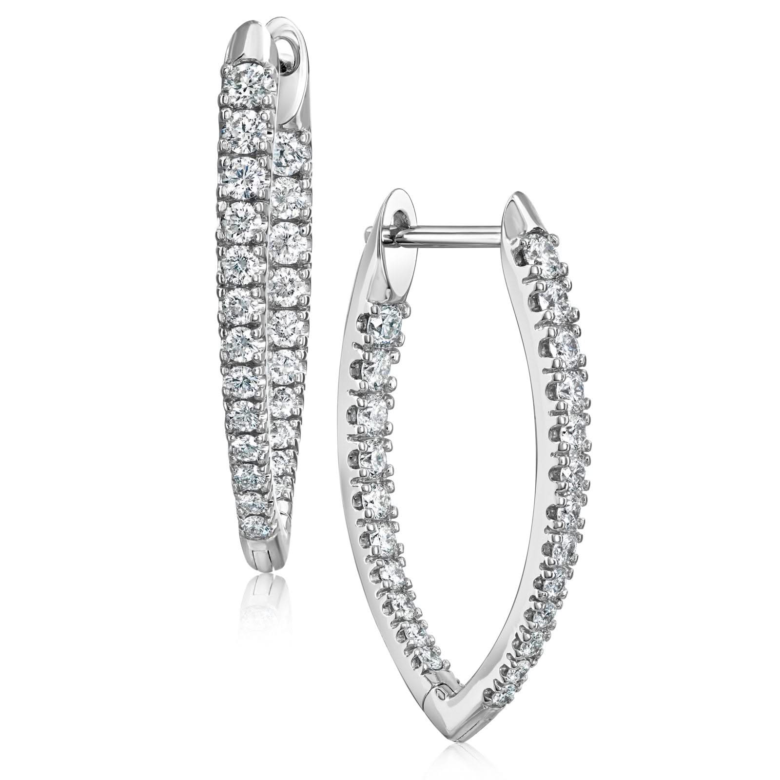 18K Gold .75 CTW Marquise Shaped Diamond Hoops