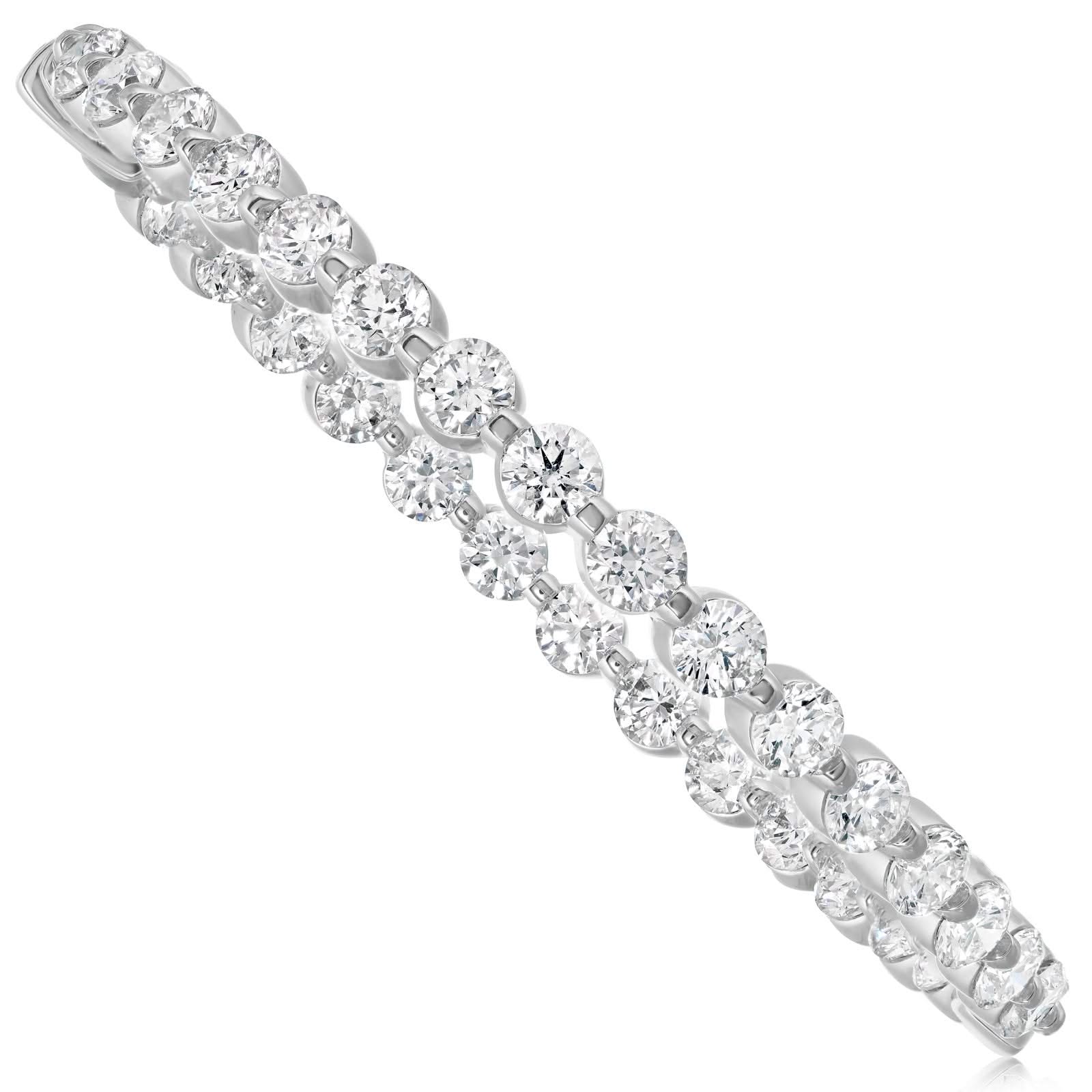 18K white gold diamond inside outside diamond hoop earrings from the Reis-Nichols Collection. The earrings feature 58 round brilliant cut diamonds weighing 4.93 ctw.