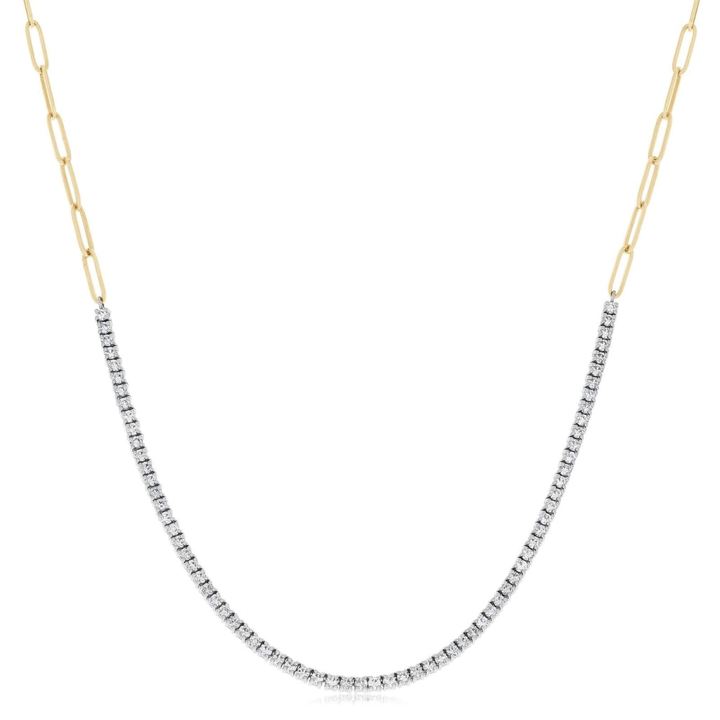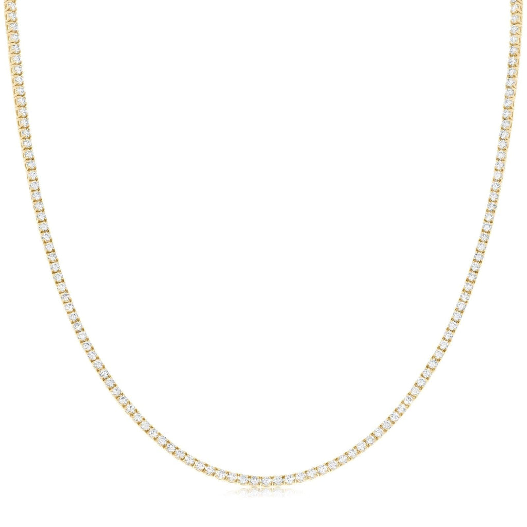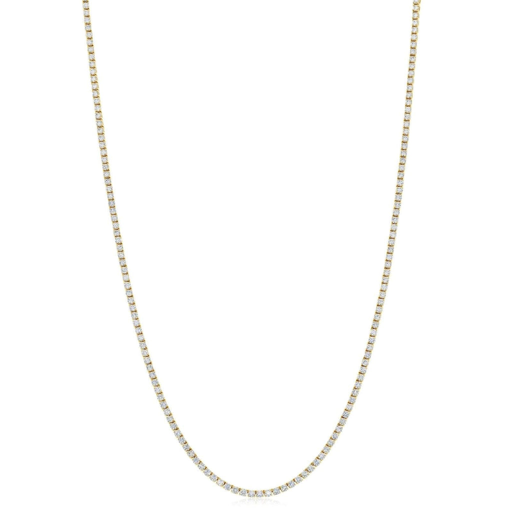 Elegant, timeless, and stylish. Diamond tennis necklaces are a diamond essential staple. Whether its a yellow gold tennis necklace or diamond and sapphire tennis necklace, they will forever be a classic diamond jewelry piece. Tennis necklaces are perfect for stacking or on their own as a statement piece.