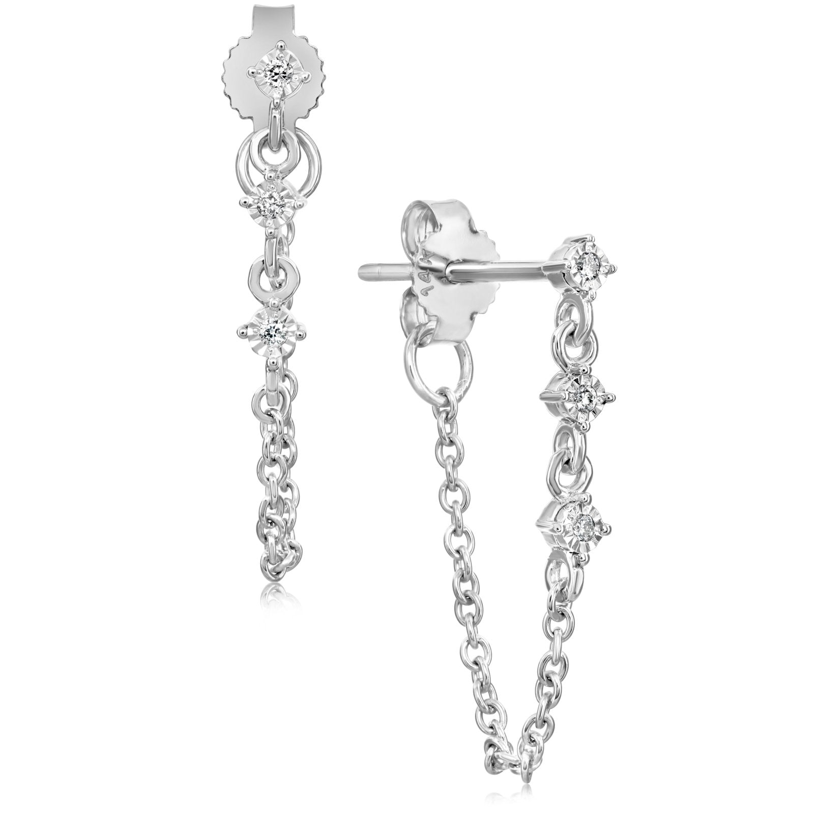 14K white gold diamond chain drop earrings from the Reis-Nichols Collection. The earrings feature six round brilliant cut diamonds weighing 0.05 ctw. They have a height of approximately 19.3mm and a width approximately of 2.3mm. Special orders may be available. Please inquire for more details on availability. Pricing may vary depending on size and materials.