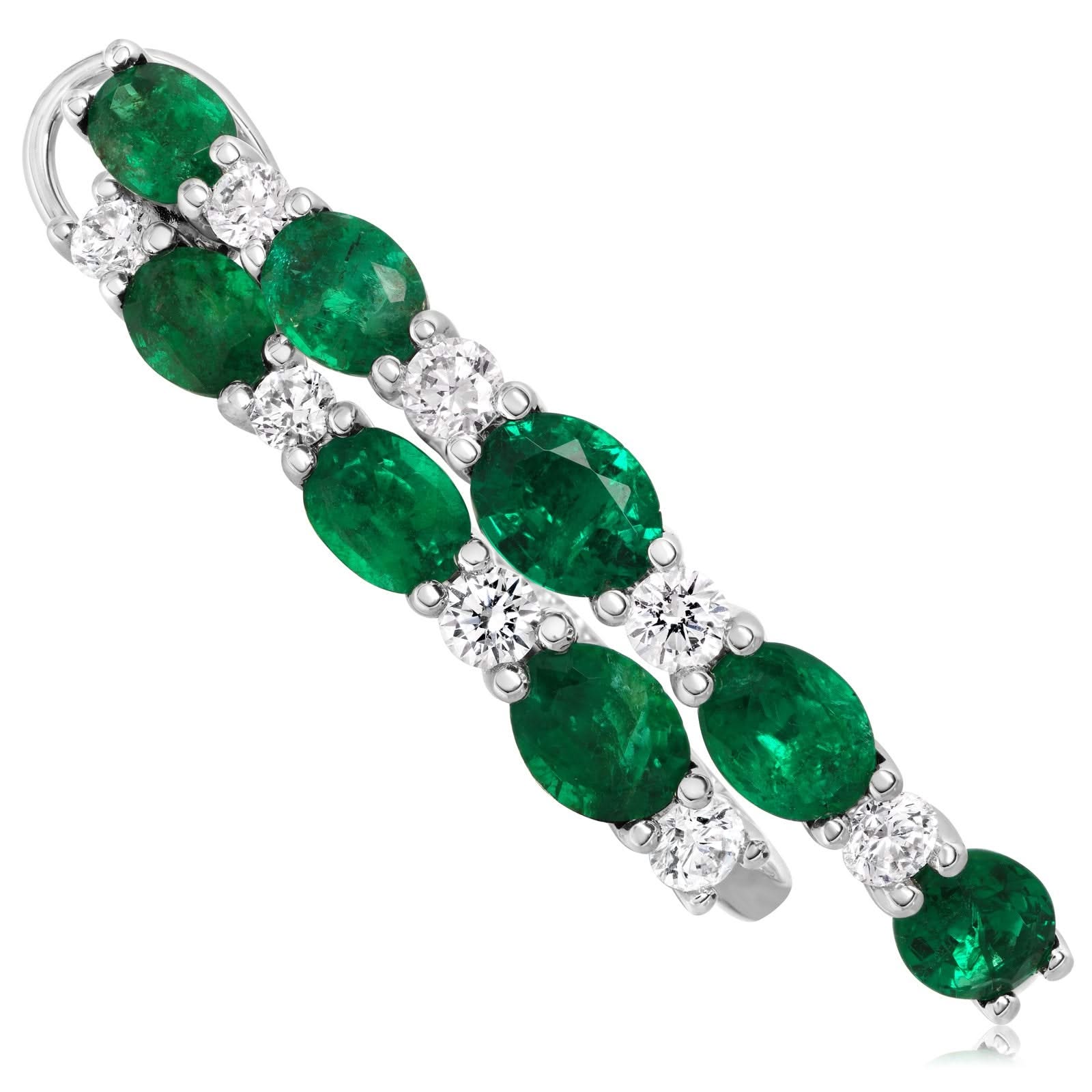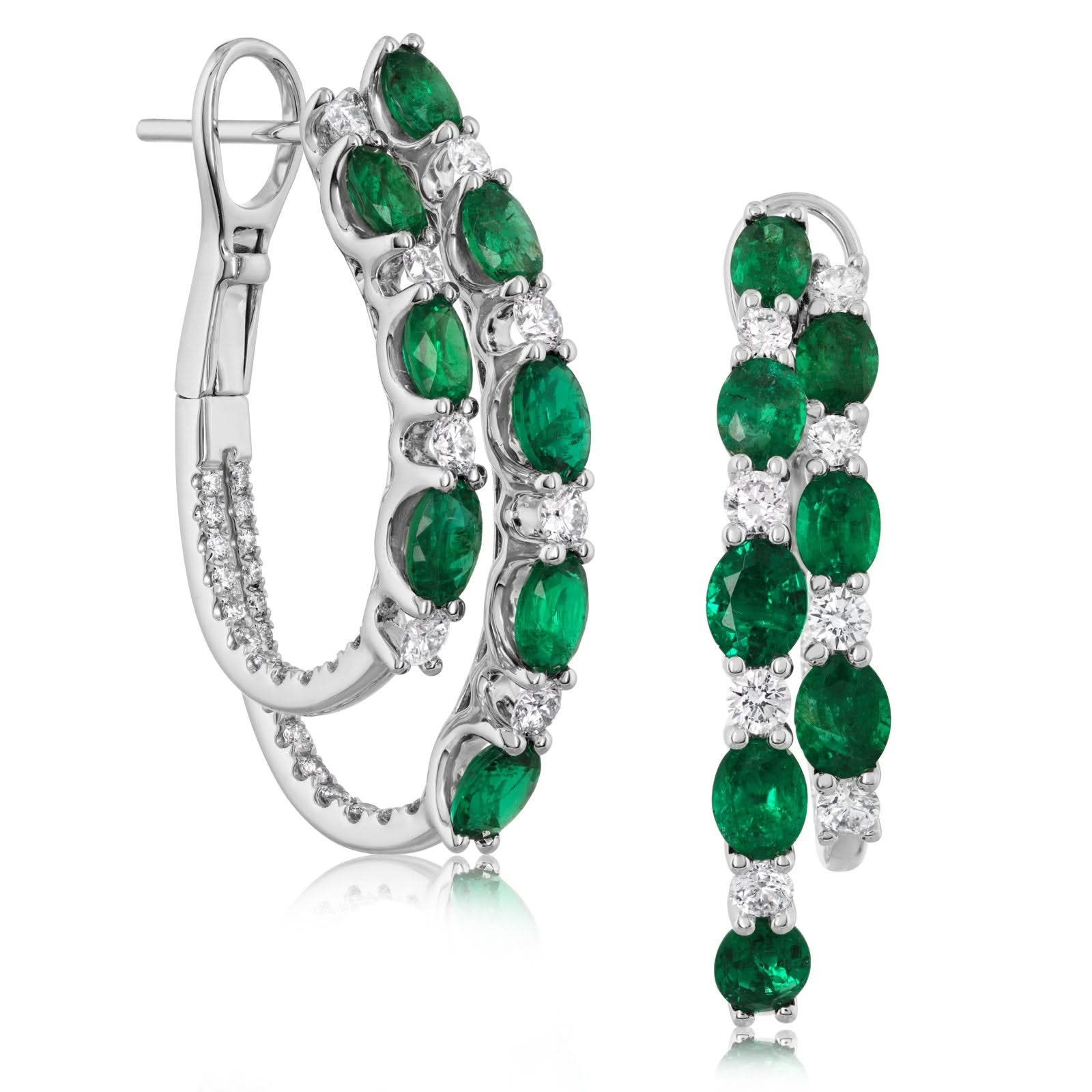 18K Gold Oval Emerald & Round Diamond Double Hoop Earrings
