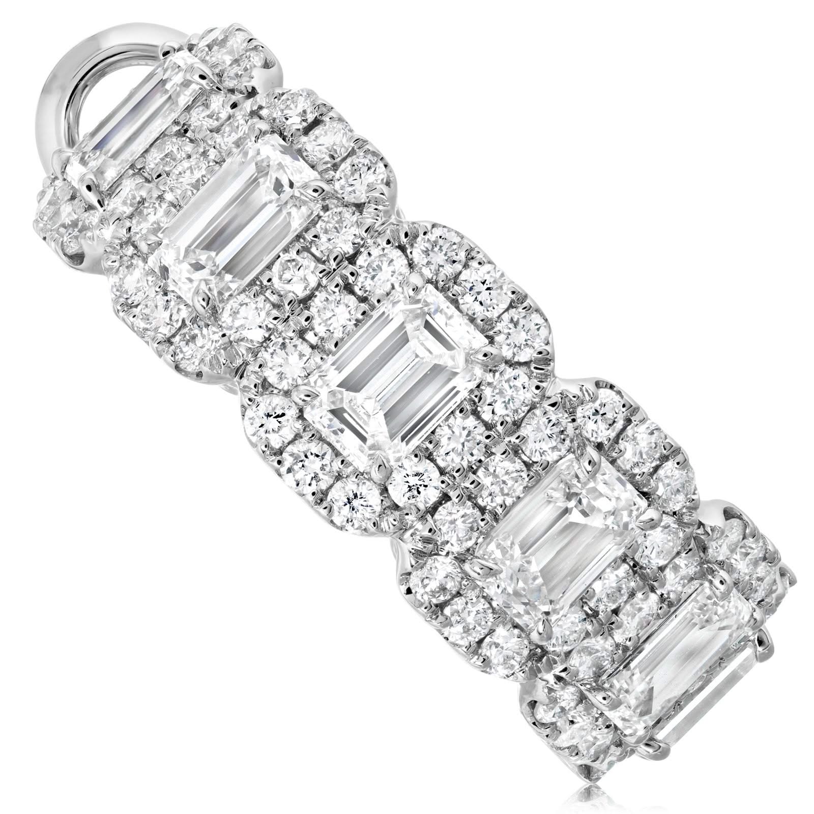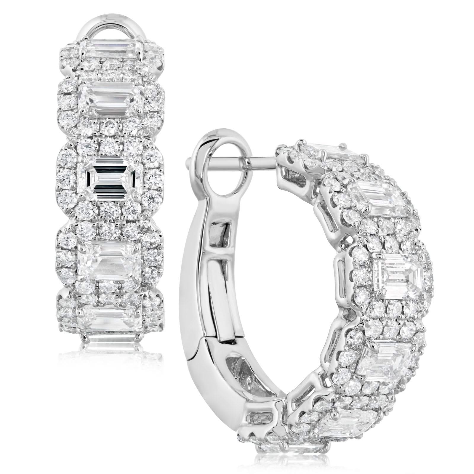 3.45 Carat Emerald Cut & Round Diamond Halo Hoop Earrings