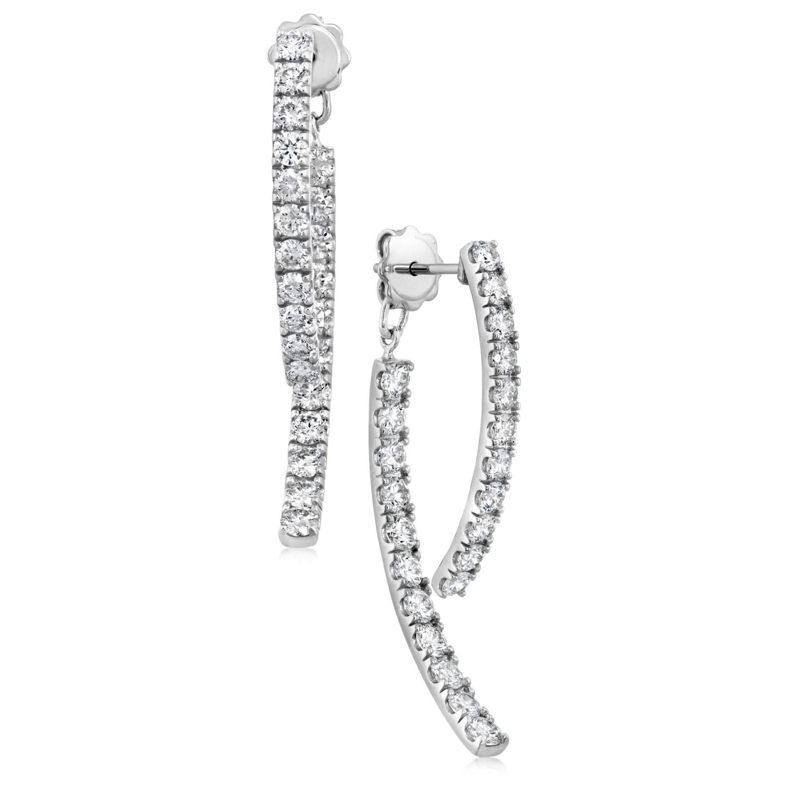 14K white gold diamond drop earrings from the Reis-Nichols Collection. The earrings feature 44 round brilliant cut diamonds weighing 3.78 ctw.