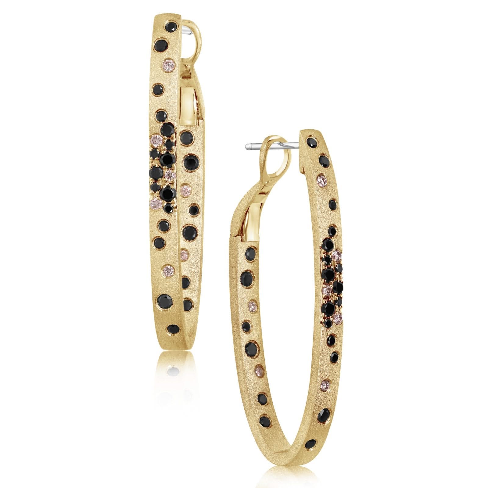 DILAMANI 14K Gold Scattered Diamond Oval Hoop Earrings