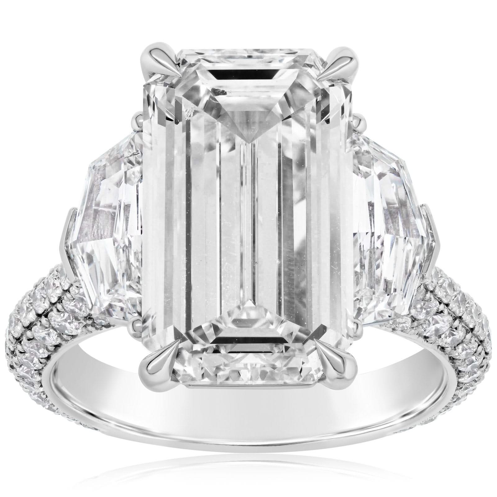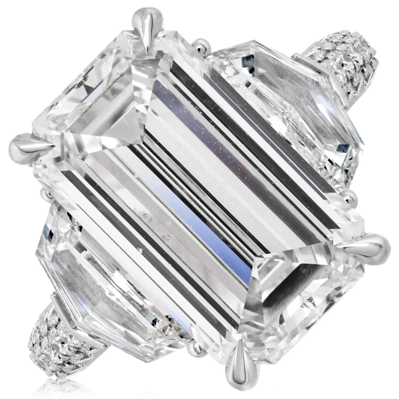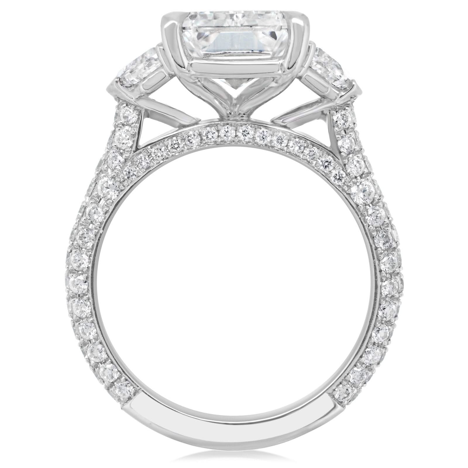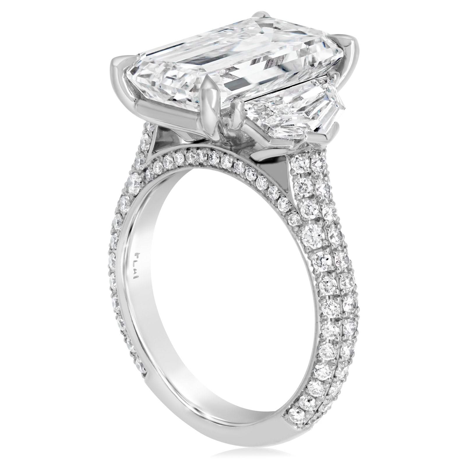 Complete 6.07 Carat Emerald Cut Three Stone Engagement Ring