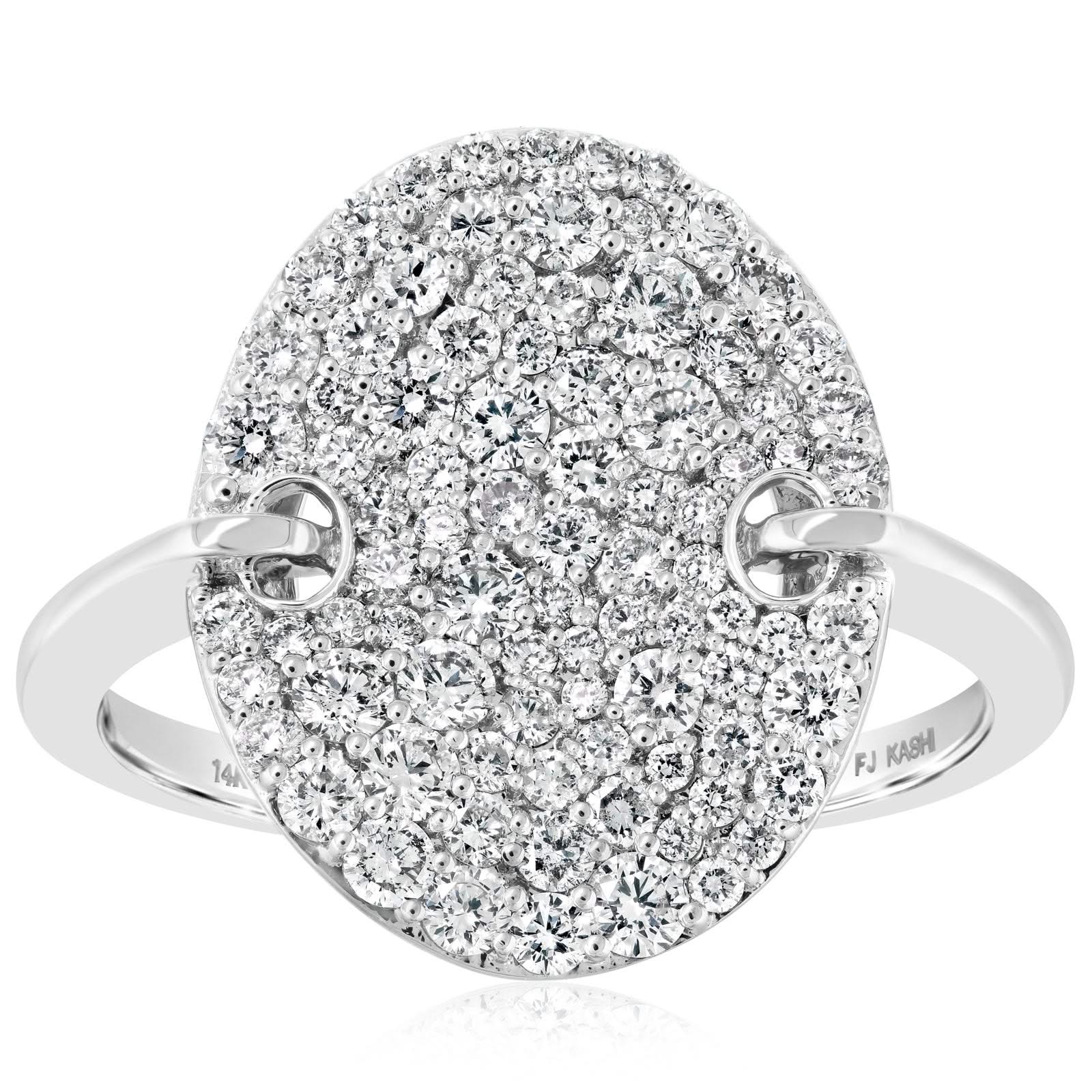 14K white gold diamond disc fashion ring from the Reis-Nichols Collection. The ring features 86 round brilliant cut diamonds weighing 1.00 ctw. Size 6.5 in stock now. Special order sizes available. Pricing may vary with size and materials.