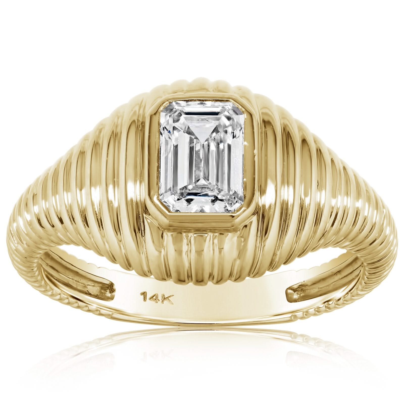 14K Gold .45 CTW Emerald Cut Diamond Fluted Ring