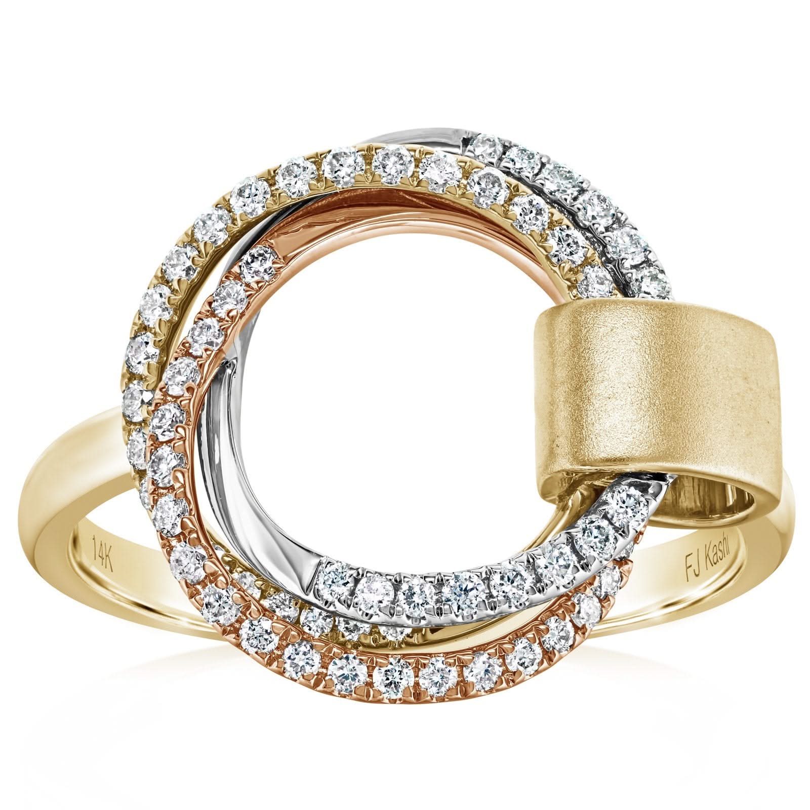 14K Tri Color .3 CTW Diamond Interlocking Circle Fashion Ring