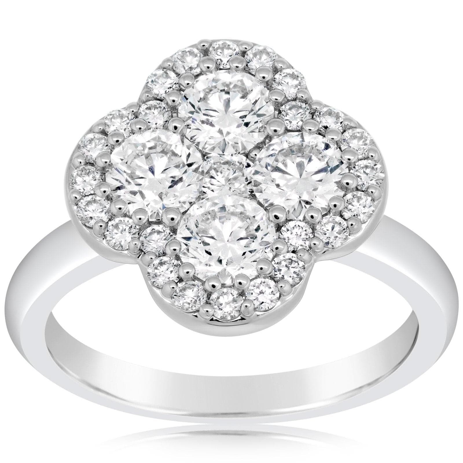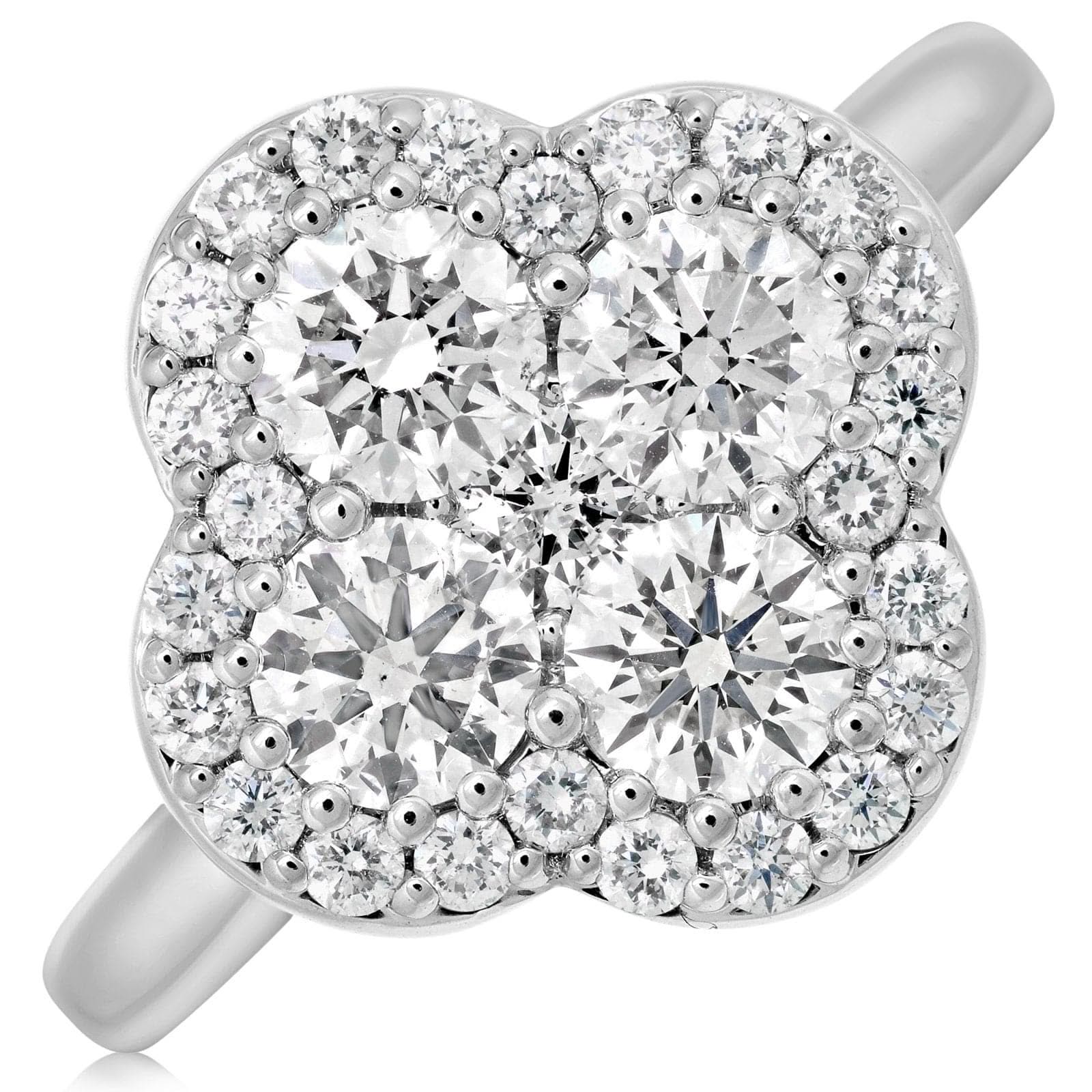Four Petal Diamond Halo Flower Ring