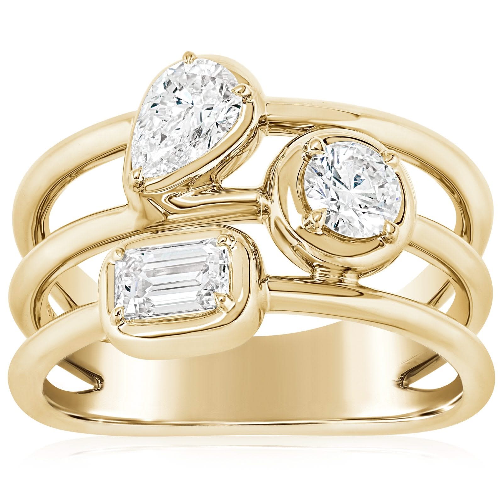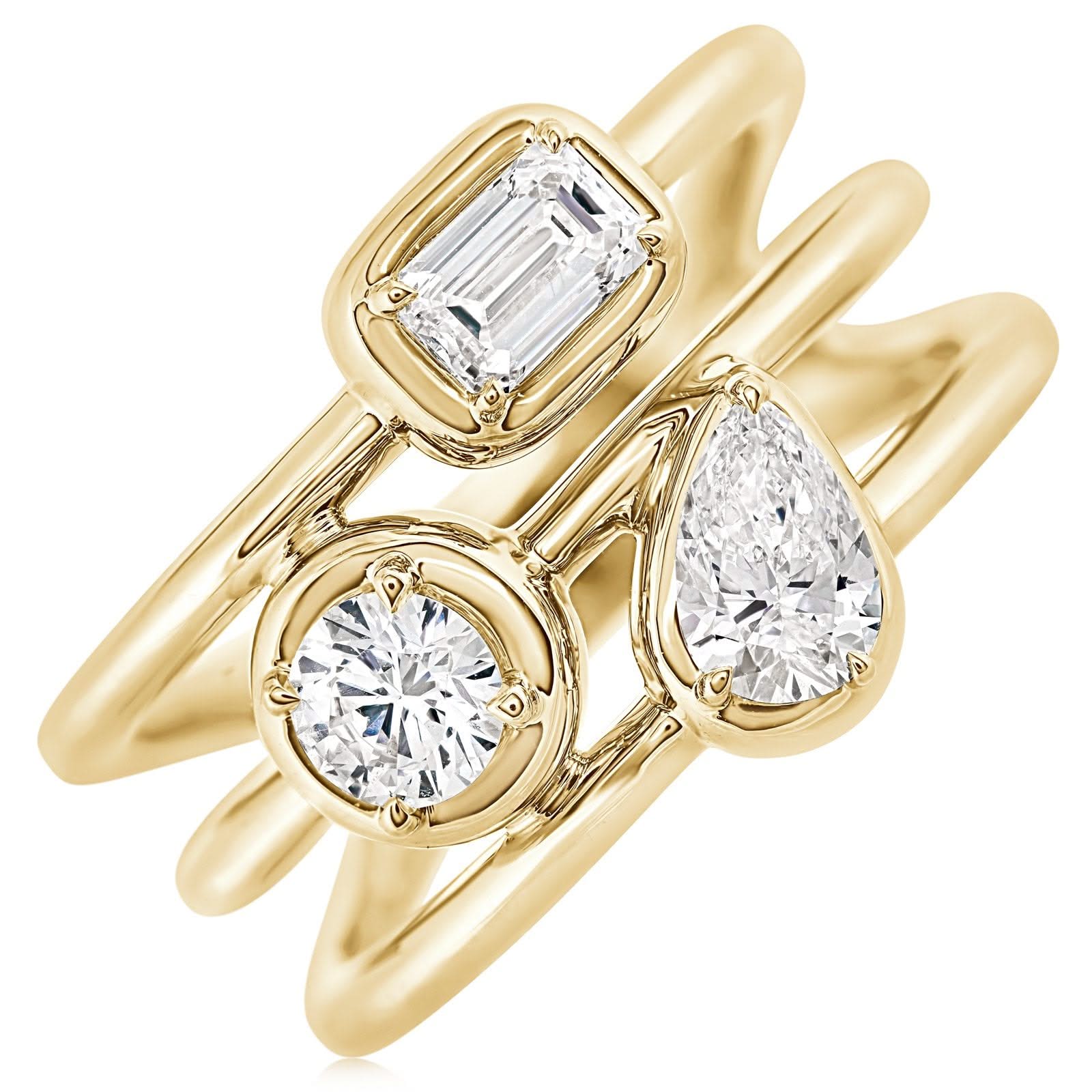 KWIAT 18K Gold Starry Night 3 Row Bezel Diamond Ring