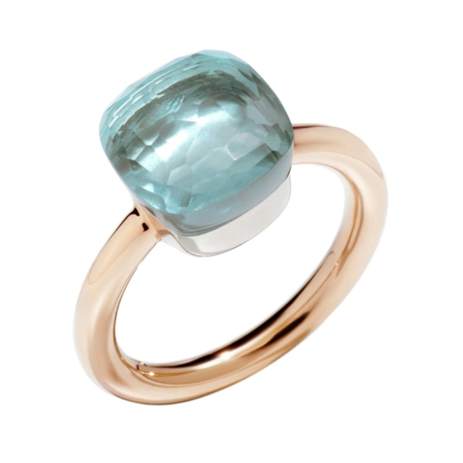 18K rose gold Nudo Classic sky blue topaz ring. Size 6.75 in stock. Designed by Pomellato.