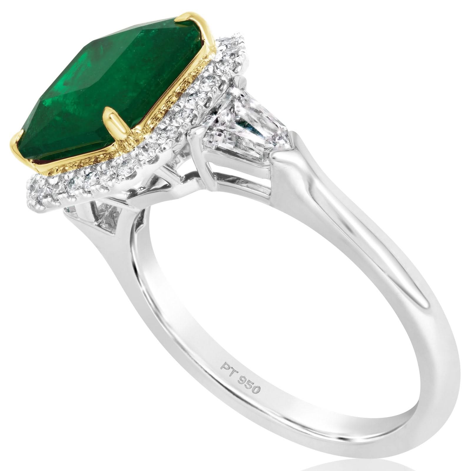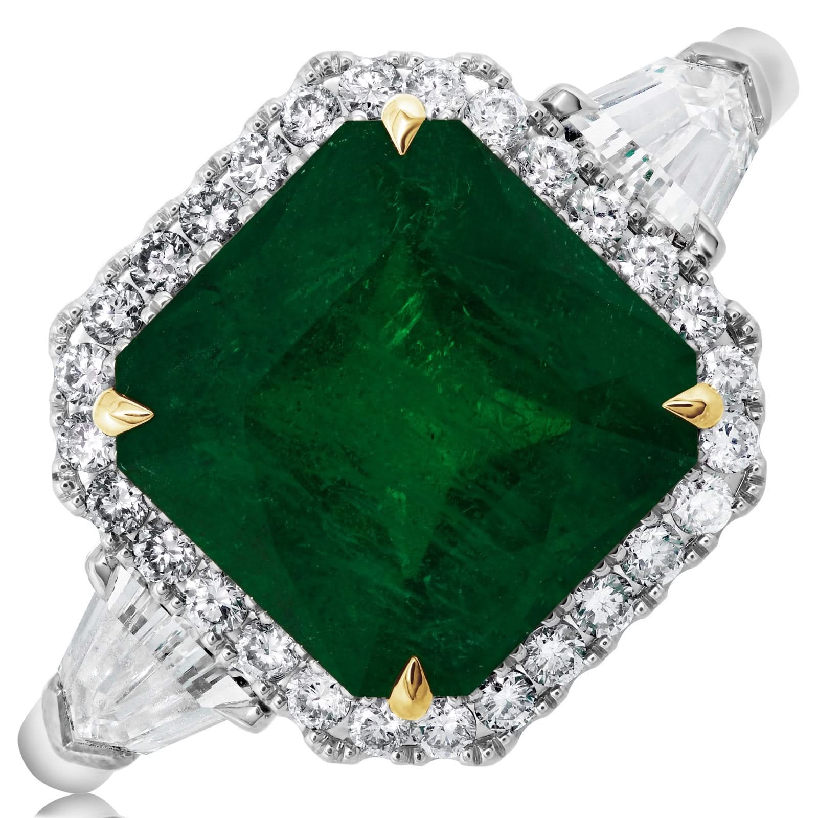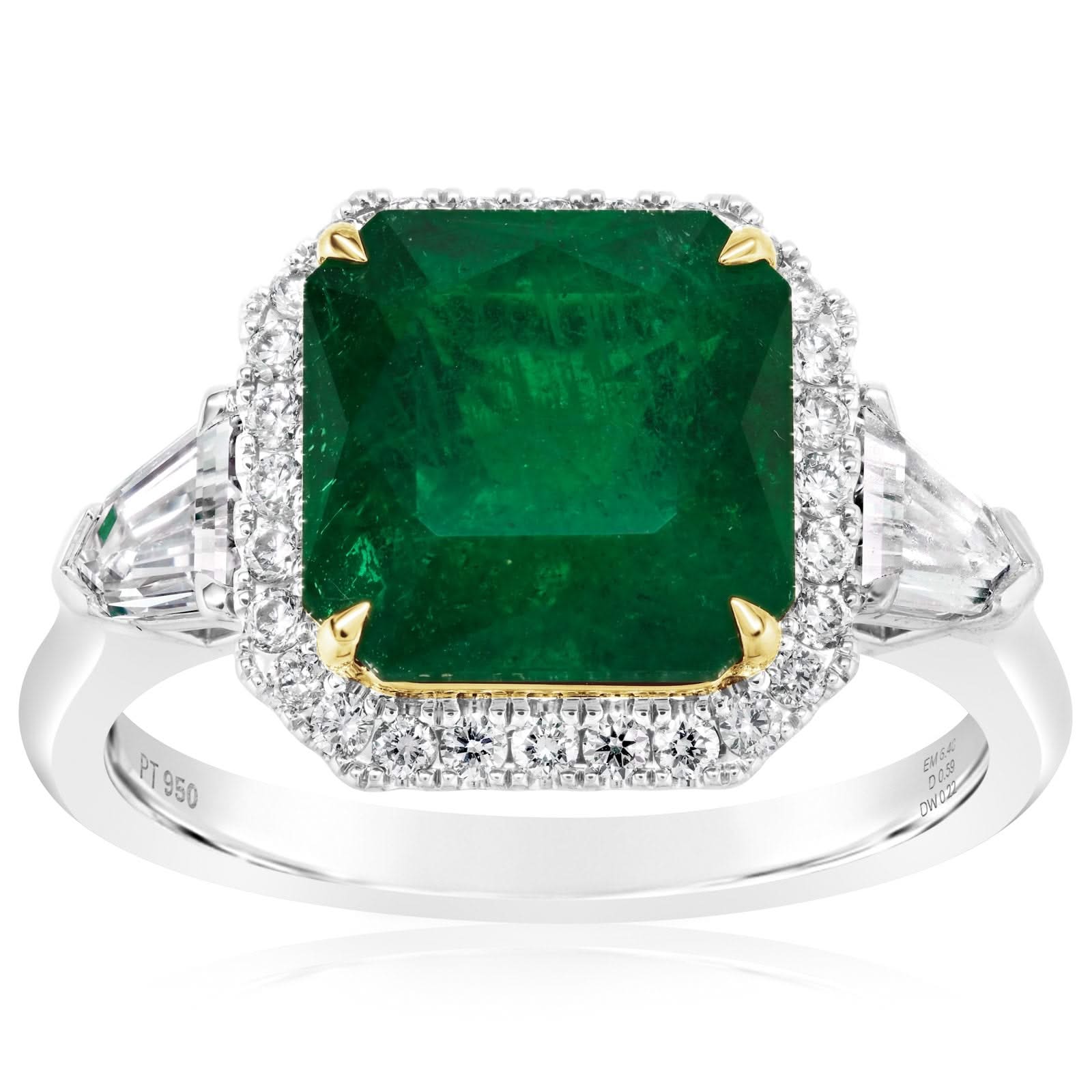 Radiant Cut Square Emerald & Diamond Halo Ring