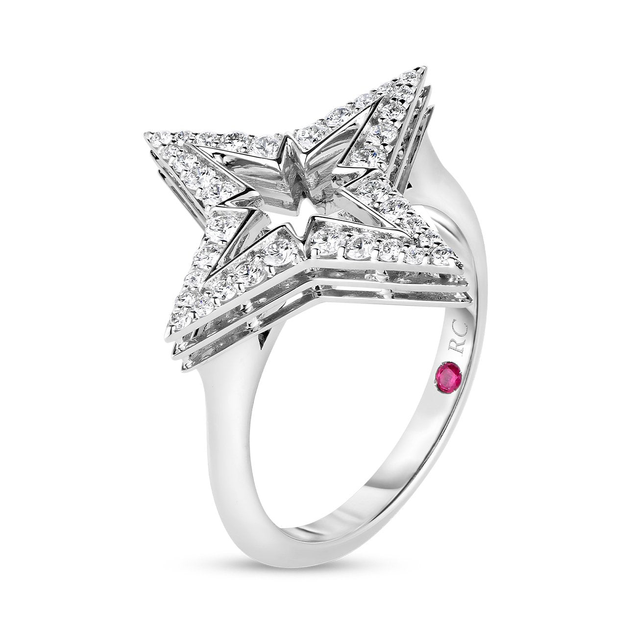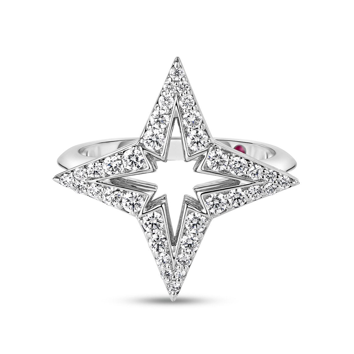18K white gold Starburst diamond pave ring. The ring features round brilliant diamonds weighing .32 ctw. Size 6.5 in stock now. Special order pricing may vary, please reach out for more detailed information. Designed by Roberto Coin.
