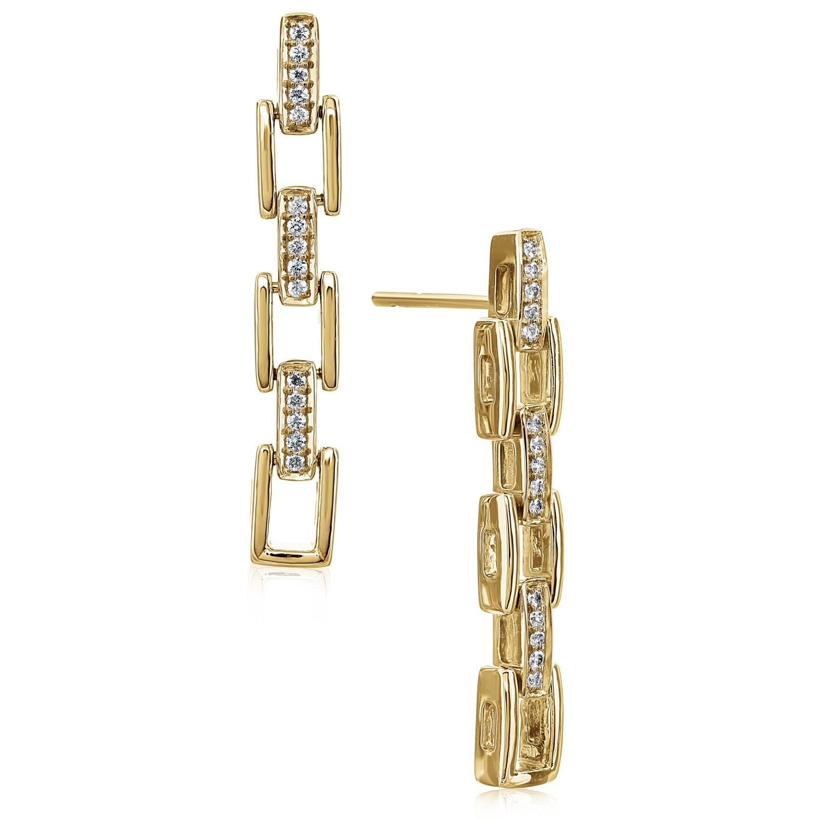 18K yellow gold Cesta diamond drop earrings featuring 30 round brilliant cut diamonds weighing .17 ctw. Designed by Sethi Couture.