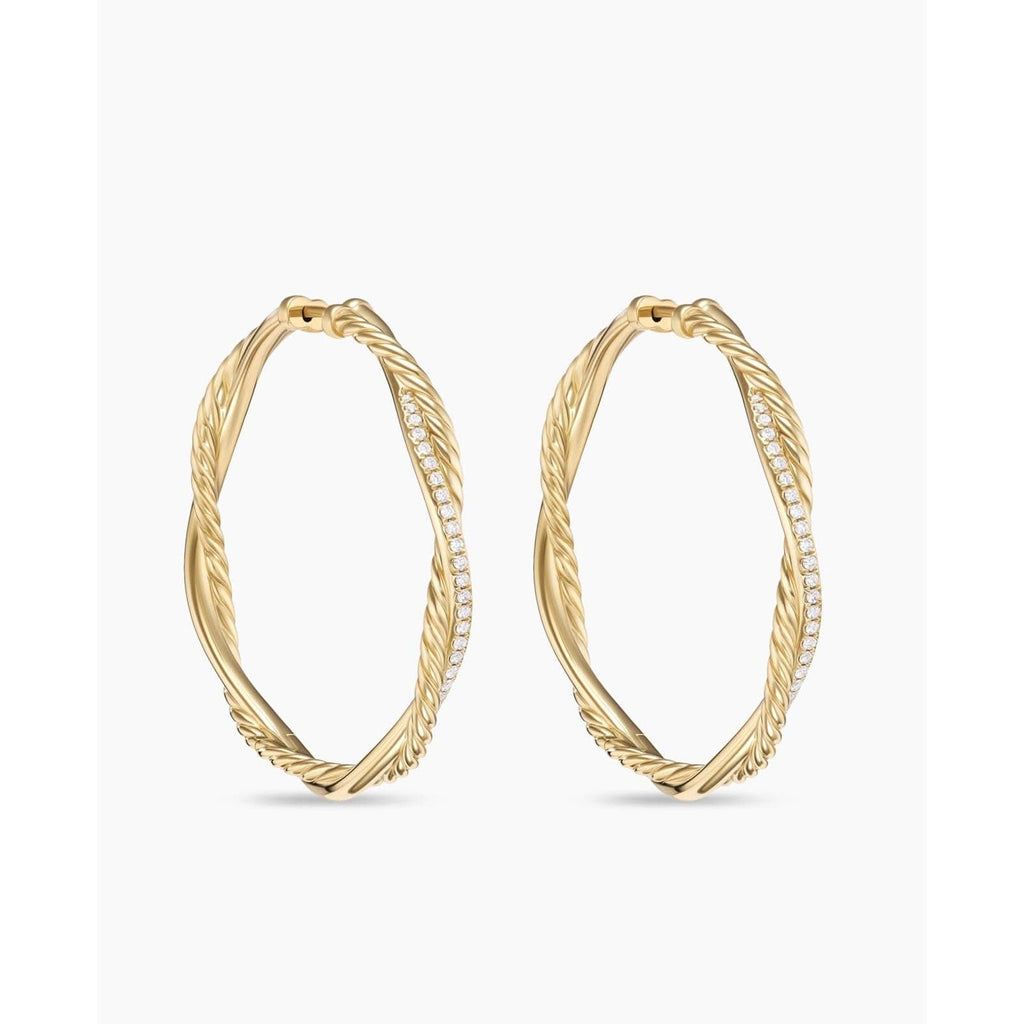 DAVID YURMAN Sculpted Cable Hoop Earrings in 18K Yellow Gold with Diamonds, 14.4mm