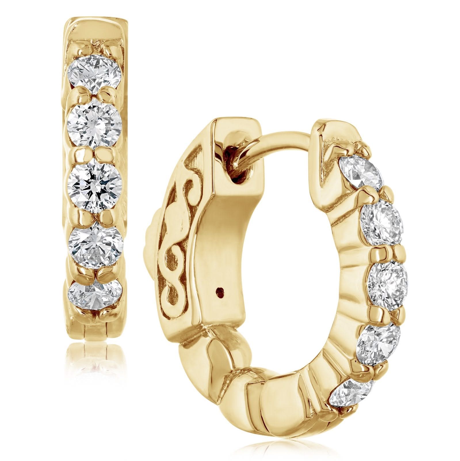 Yellow Gold 1/2 Carat Diamond Huggie Hoop Earrings