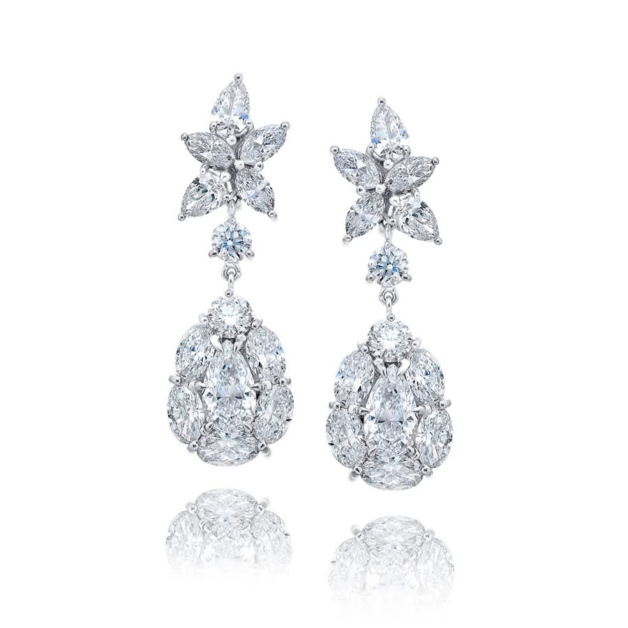 One-of-a-Kind Certified Diamond Floral Drop Earrings in Platinum