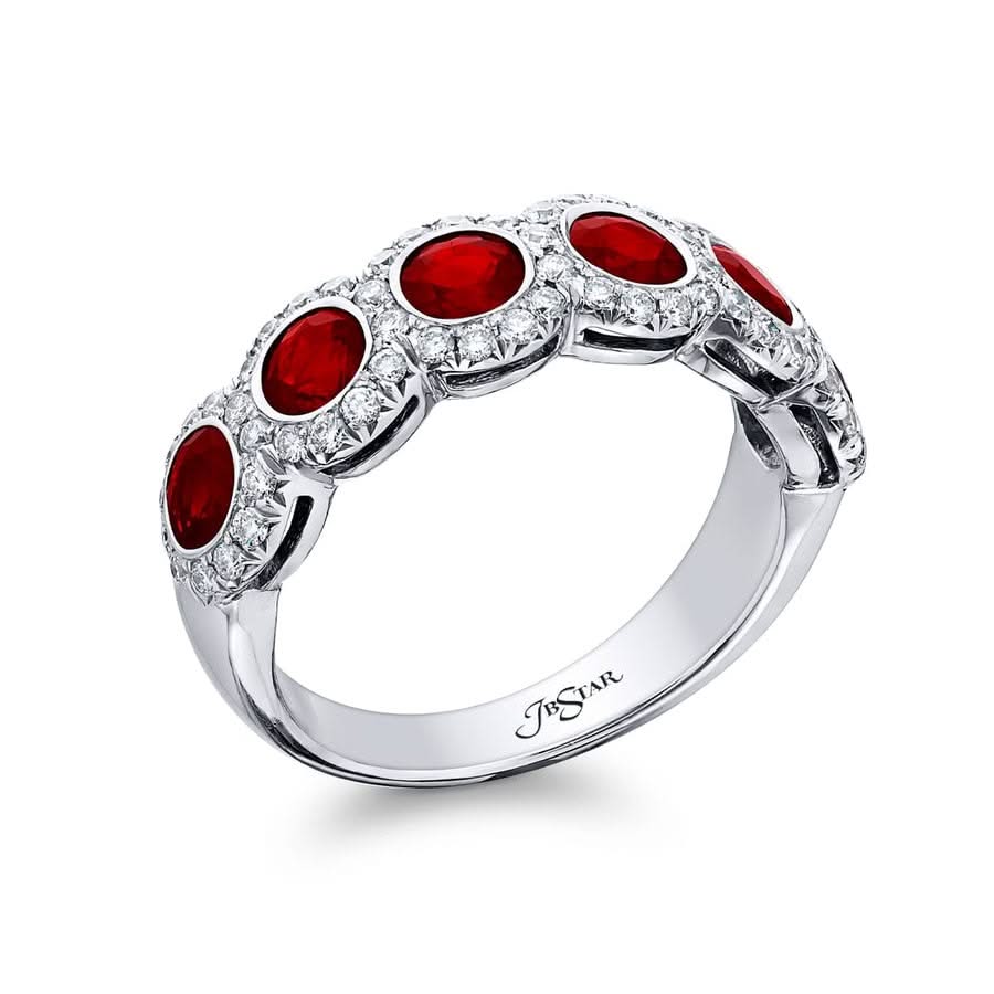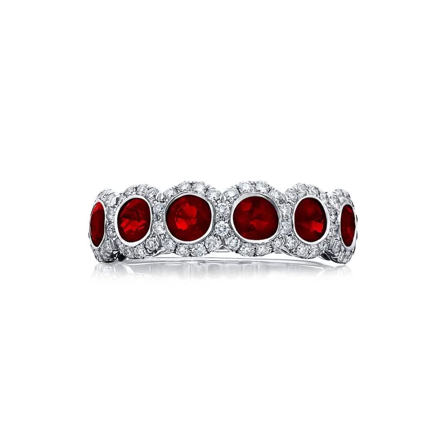 Platinum Round Ruby and Diamond Micro Pave Band