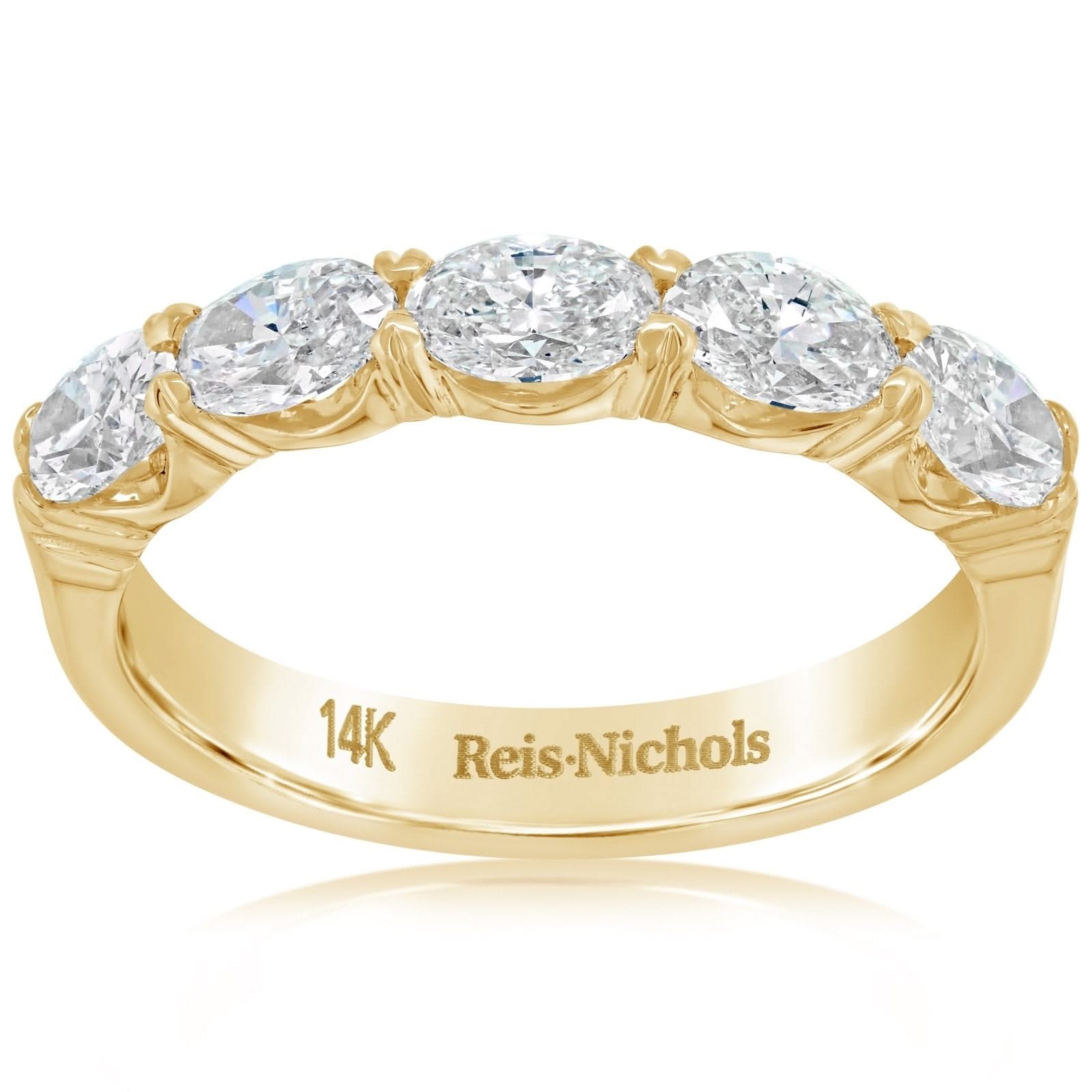 14K yellow gold diamond wedding band from the Reis-Nichols Collection. The band features five oval cut diamonds weighing 1.23 ctw. Size 6.5 in stock now. Special order sizes also available. Pricing may vary with size of ring.